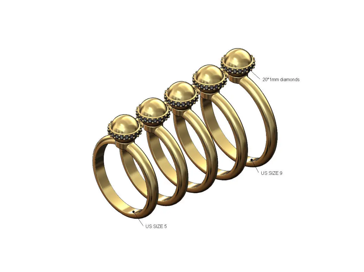 Sizes : US size 5,6,7,8,9. the ball has a 0.85mm wall thickness and 20*1mm diamonds.