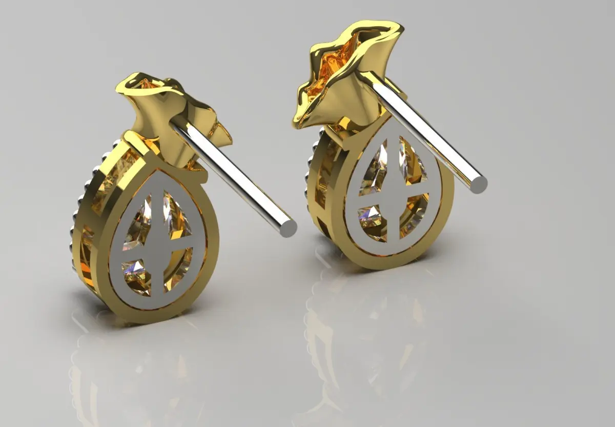 Two-tone combination: The use of yellow gold and silver metal (white gold) in one design increases the visual appeal and versatility of the earrings.
