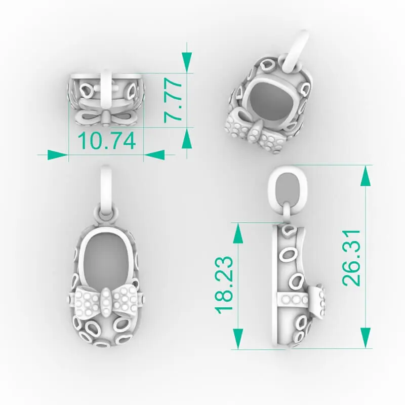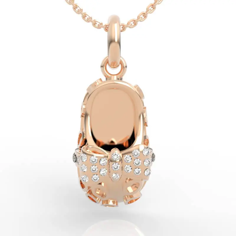 Meet the Diamond Bow Baby Bootie Necklace Model—a beautifully crafted 3D jewelry file that saves you time without sacrificing quality. This pendant model blends royal sweetness with luxurious brilliance, featuring a princess-style baby shoe adorned with a bow set with 25 diamonds totaling approx. 0.12 carats.