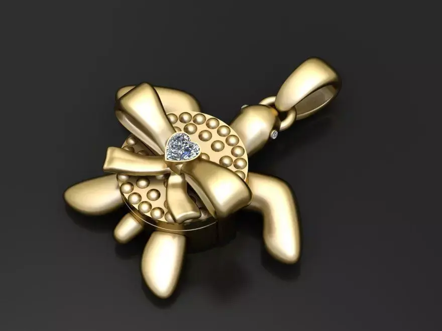 A charming 3D printable turtle pendant in gold, adorned with a decorative bow and a heart-shaped diamond centerpiece. A unique fusion of nature, love, and luxury elegance.