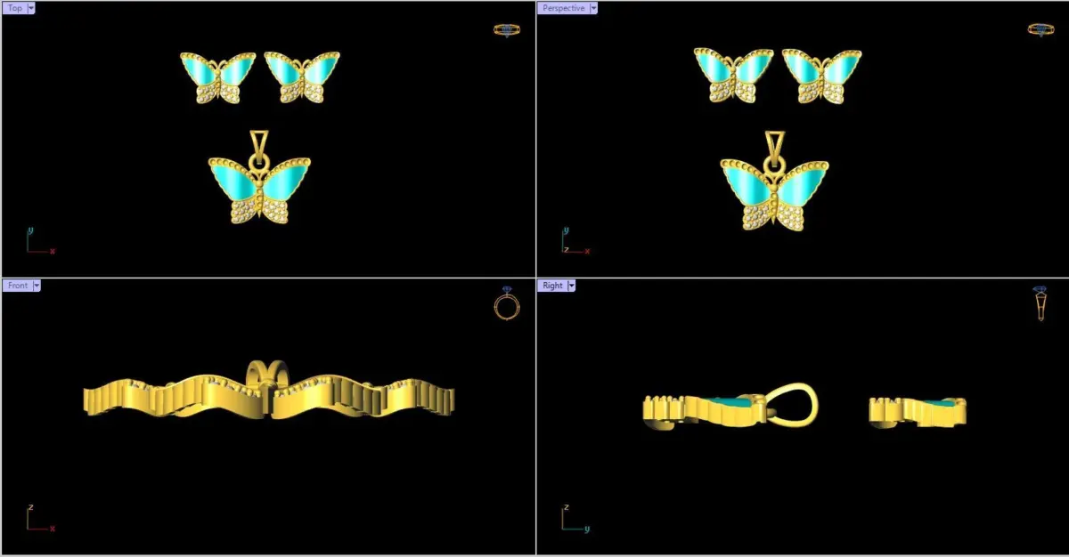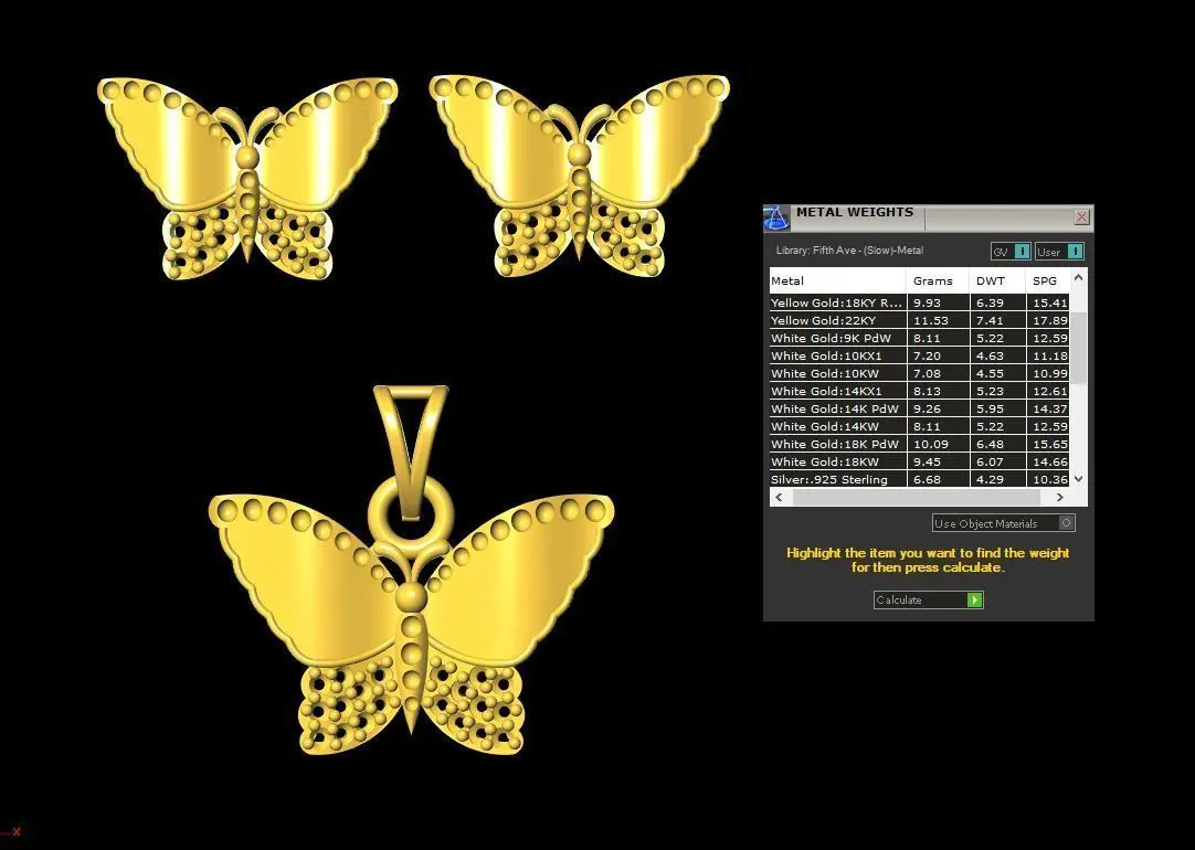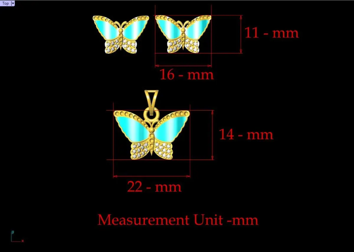Butterfly pendant jewelry gold 3d print model_ File format: STL , OBJ , 3DMPendant Magerit butterfly All sizes of stones and products are displayed on the images. The file cointains OBJ, STL and 3Ds models.For any additional information or request like editing or if you have trouble downloading contact me. I'll be glad to help as soon as i can. The model is made in full compliance with the technical requirements for production.
