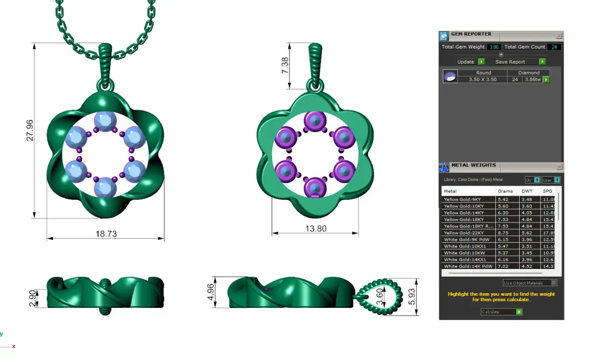 Diamond Circle Flower Pendant 3D print model