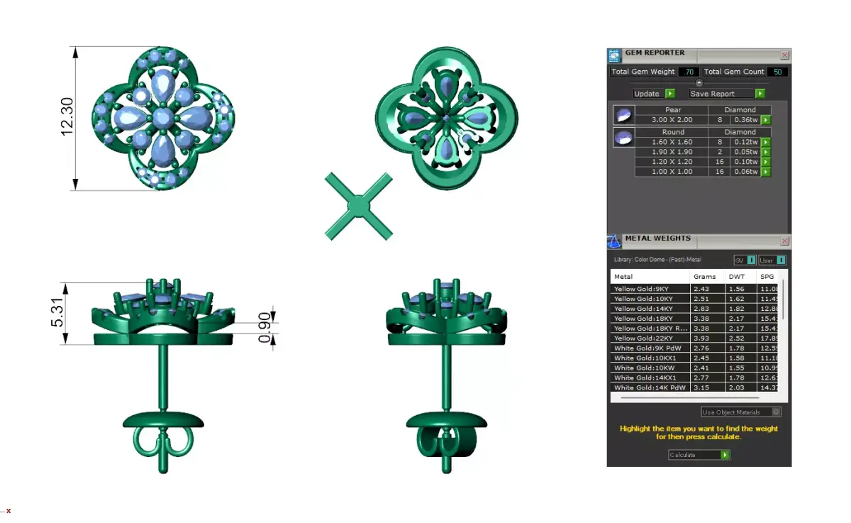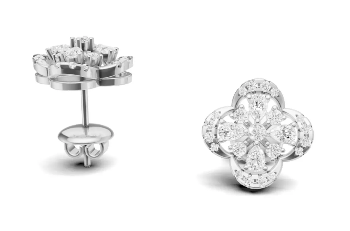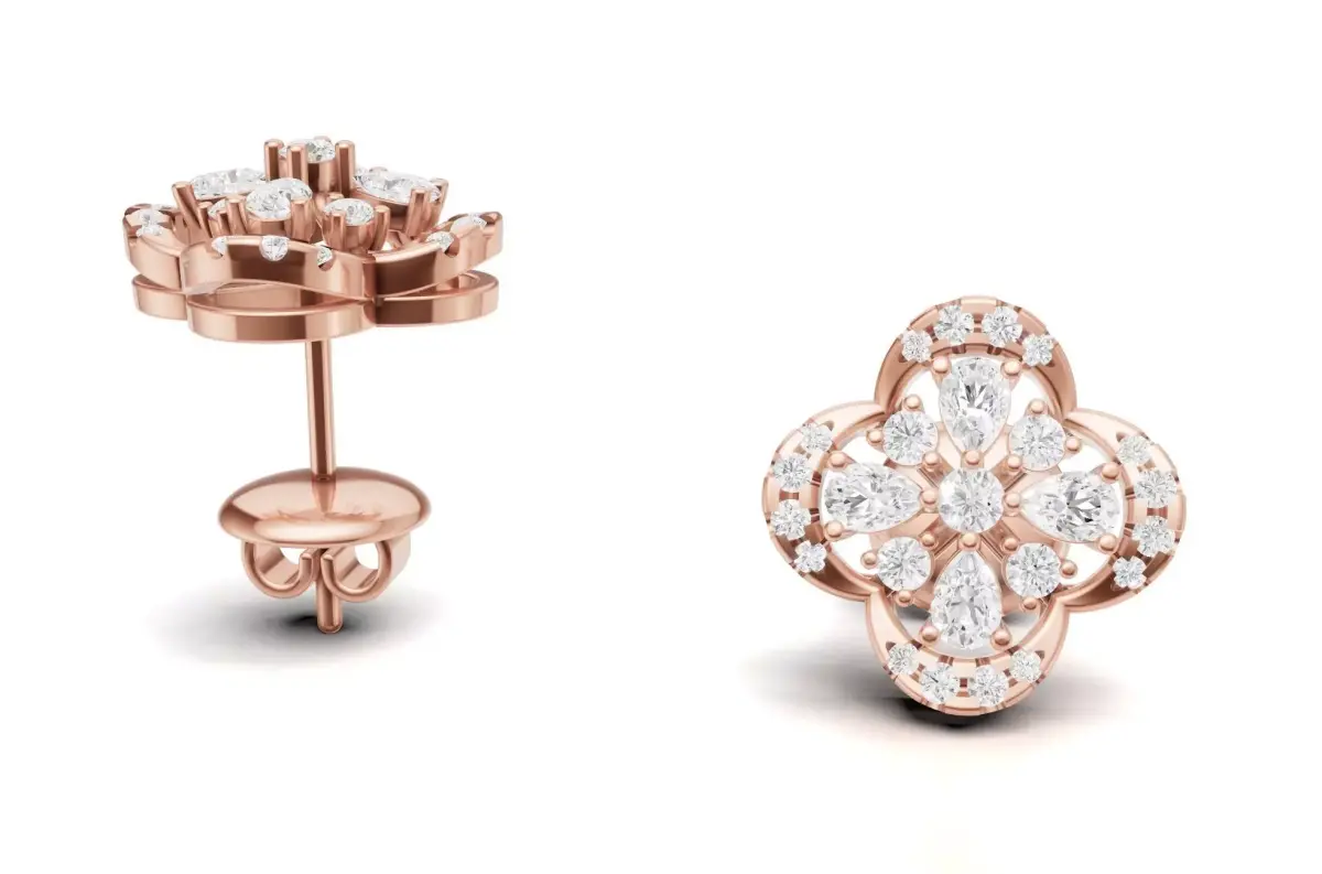 Diamond Clover Stud Earrings For Women 3D print model