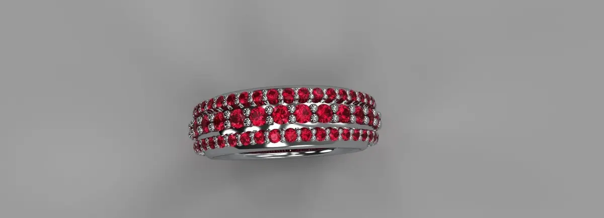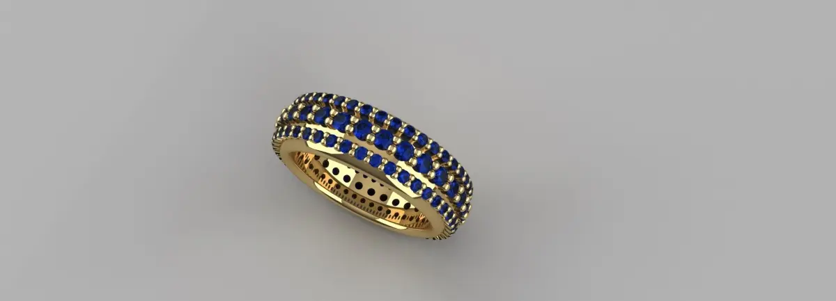 Size 7 diamond eternity ring model up for sale. Meets all jewelry manufacturing specifications. Features thirty one round 2mm stones and ninety round 1.3mm stones. All other dimensions are in the last two pictures.
