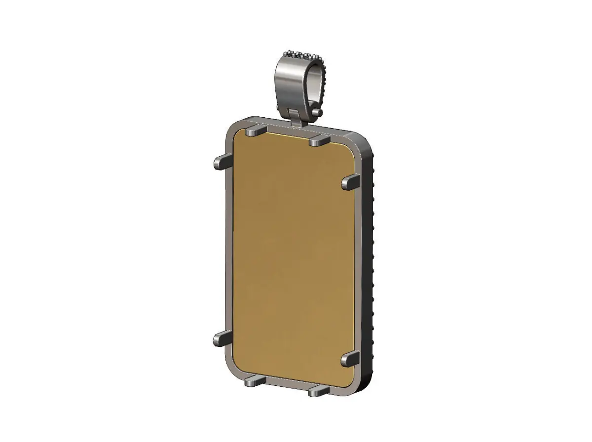 Size of the gold bar (40*23*2.25mm). 18*1.5mm diamonds for the bail , 52*2mm diamonds for the frame.