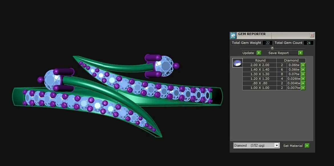 Gems: - Total gem count is 24 and total gem weight is 0.22. There are gems round 0.80, 1.00, 1.20, 1.30, 1.40 and 2.00. More info in the picture above.
