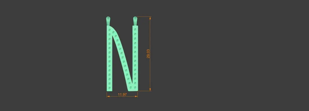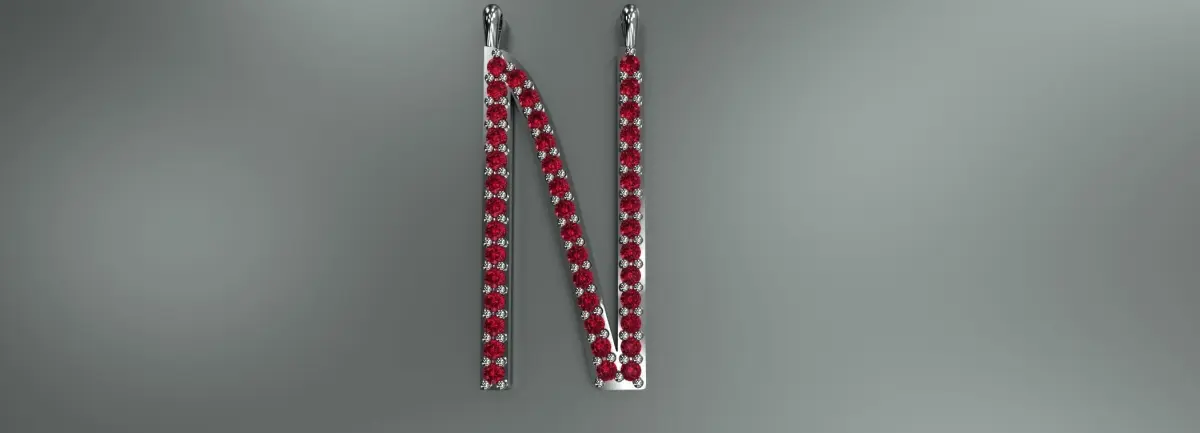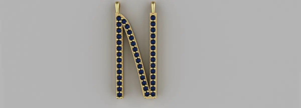 Diamond N pendant model up for sale. Features forty two 1.5mm round stones. All other dimensions are in the last two pictures.