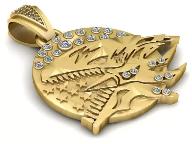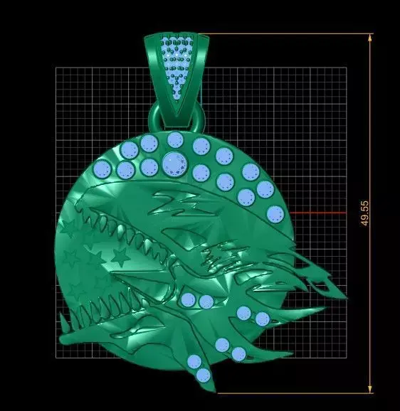 The design is set against a textured, circular base that features embossed stars on one side and a halo of brilliant-cut diamonds across the top arch. The predator's body is further accented with pave-set stones to create a high-contrast, iced-out appearance. Finished with a stone-set V-shaped bail, this pendant is the ultimate accessory for fans of speed, power, and custom car culture.
