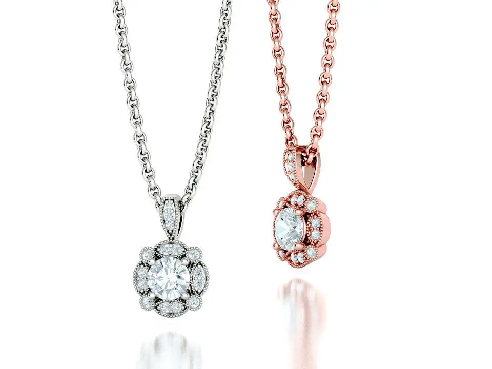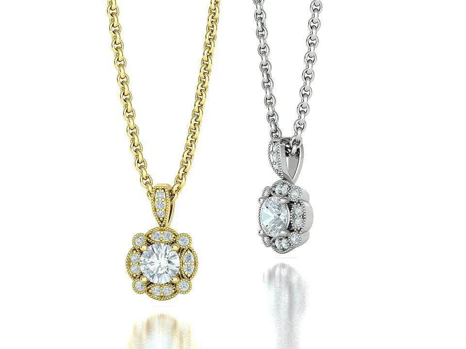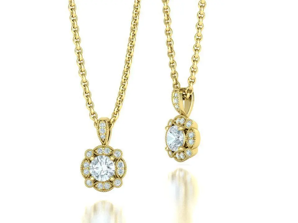 Diamond Pendant Milgrain Design Artdeco Necklace 5mm stone 3D print model