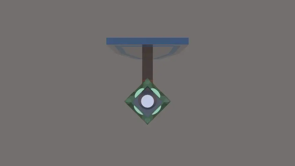 This new light source was thought up on a whim to add more variety to the building I'm currently working on. Originally the crystal cover was to be an inverted cubic pyramid in shape, but after experimenting with a new extruding tool, the rough, diamond shape was favored more, so it stayed.