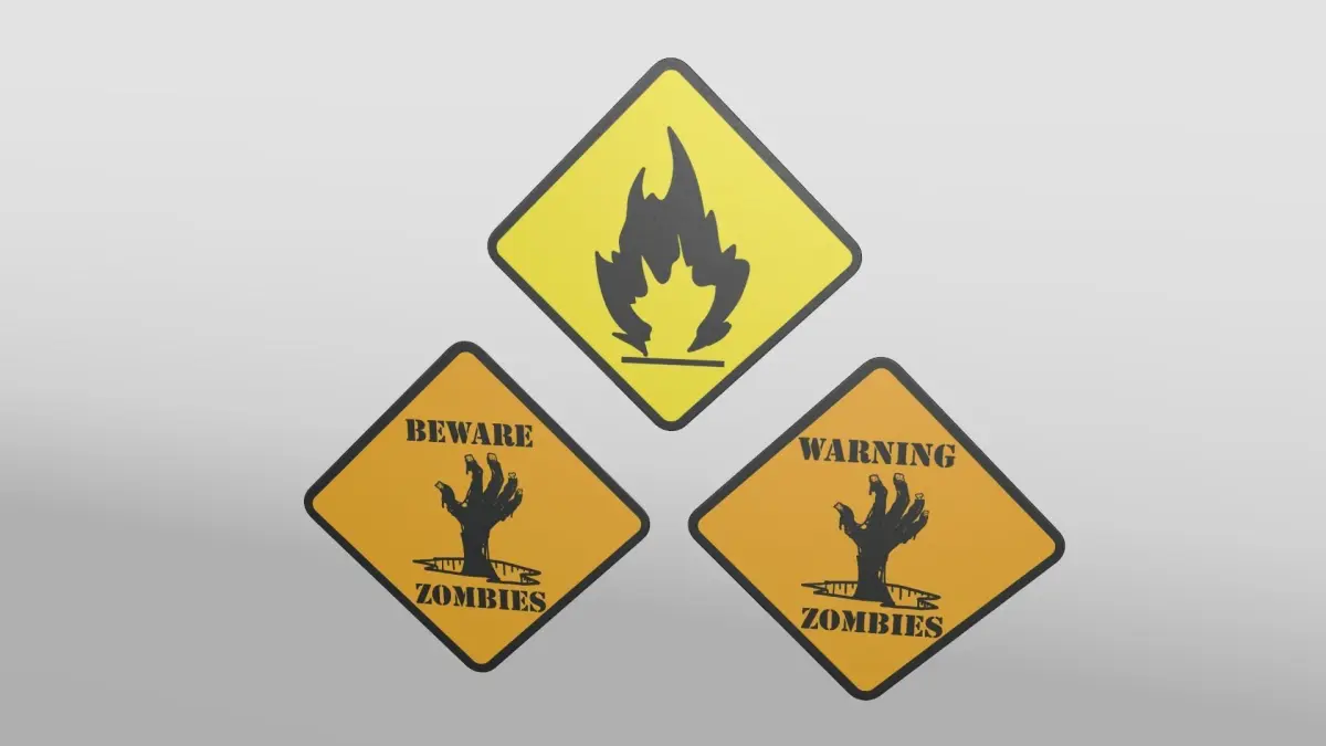 A curved, diamond shaped sign designed to be used in dangerous or construction environments. Included with this product are 11 different color textures for various hazard warnings.