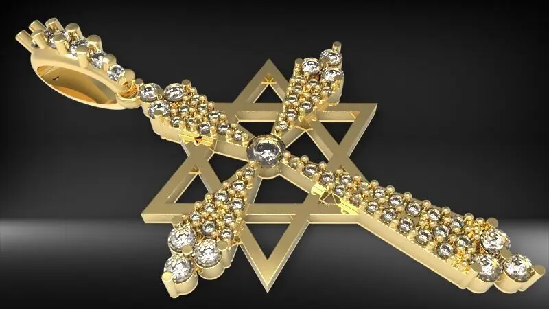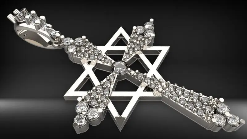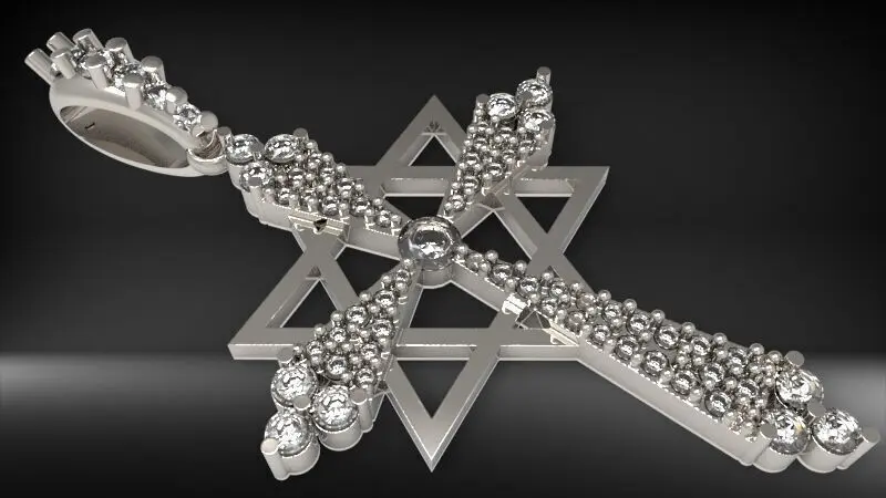 Diamond Star of david cross pendant