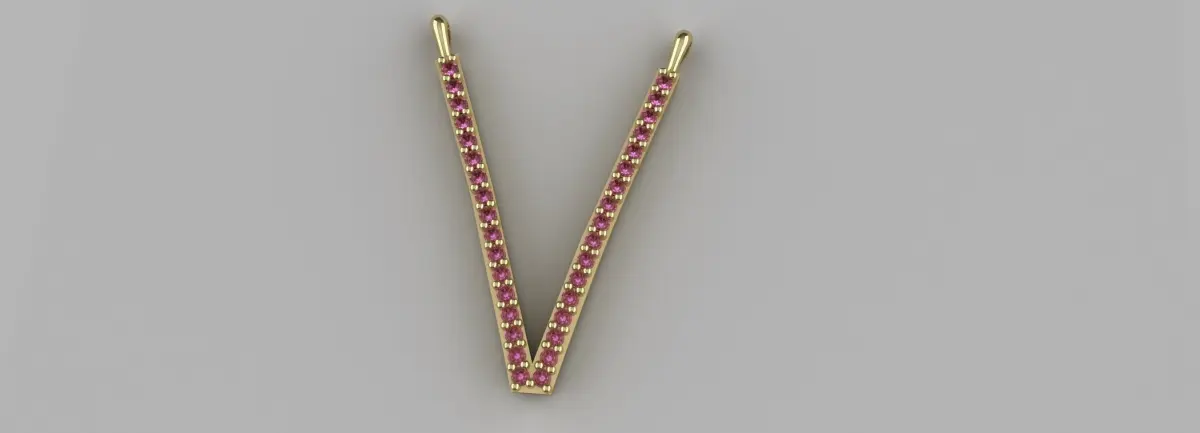 Diamond V pendant model up for sale. Features thirty four round 1.5mm stones. All other dimensions are in the last two pictures.
