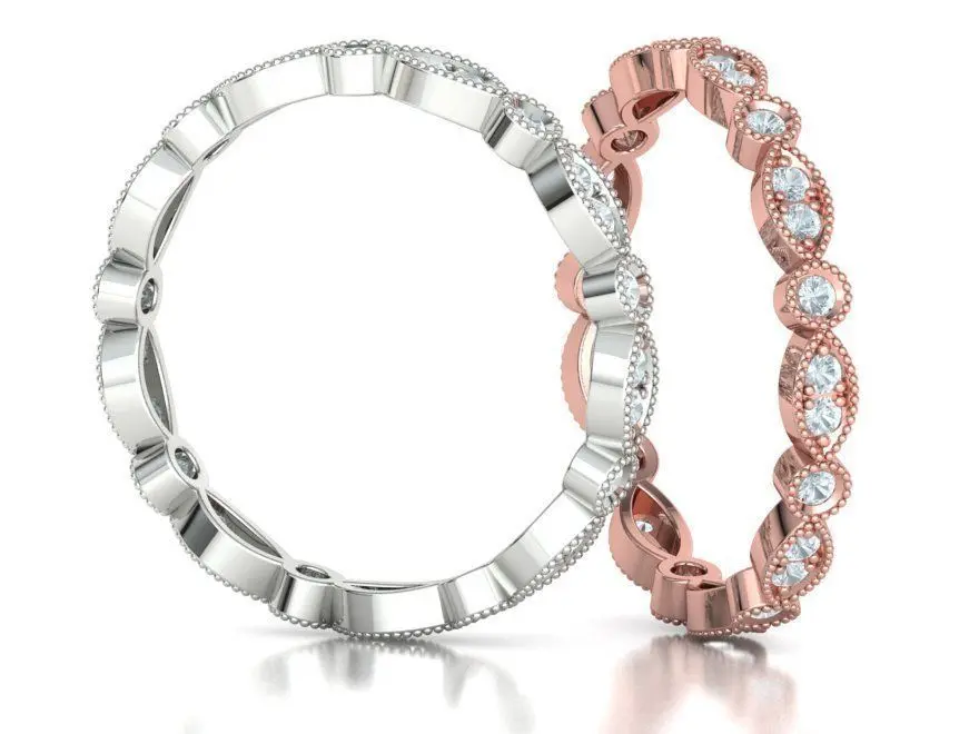 Diamond Vintage Milgrain Band Ring Eternity Band 5US-9US sizes 3D print model