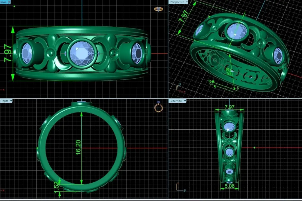 jewelry 3D modeling, creative design, cam cad, rapid prototiping, rendering, animation original classic evening ring stylish trendy elegant graceful diamond gold