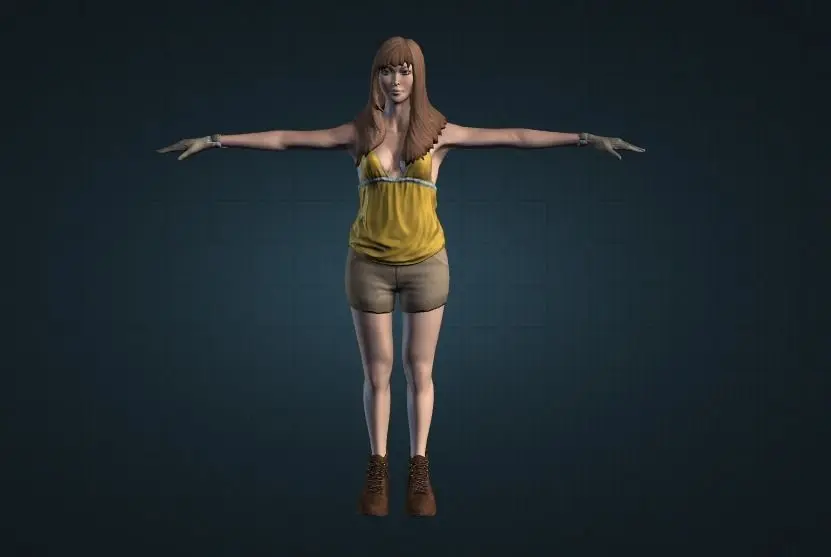 FEMALE T POSE CHARACTER having vertices /object/edges/faces/triangle
