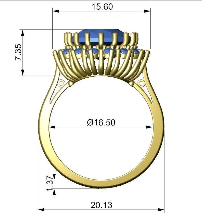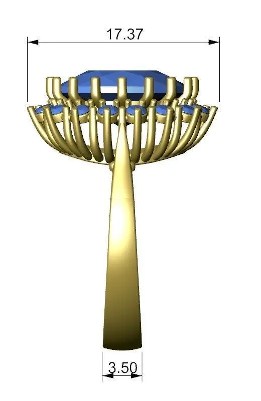 Ring size: 16.5mm Head gem: 10mm*12mm Rounf gems 2mm - 16 pcsСonsists of 3 parts