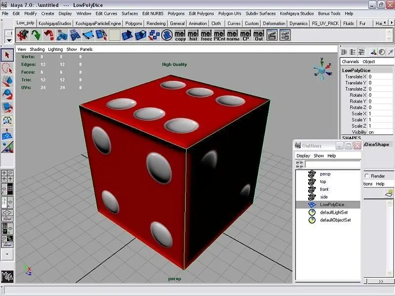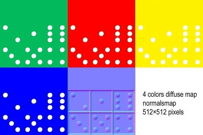 Low poly dice model for games, educational, visualization and other purposes.Basic cube with diffuse (color) and normal map.Rendered with V-ray (ver. 1.5) in 3ds Max (render scene included).Maya 7 (.ma, .mb), OBJ (.obj with .mtl), 3ds Max 2009 (.max) and Autodesk FBX (.fbx) format included.Polygons: 6Vertices: 8Model is mapped on single 512×512 pixels texture map. Diffuse maps in four colors and normal map in .tga formats are included in dice_textures.zip file.