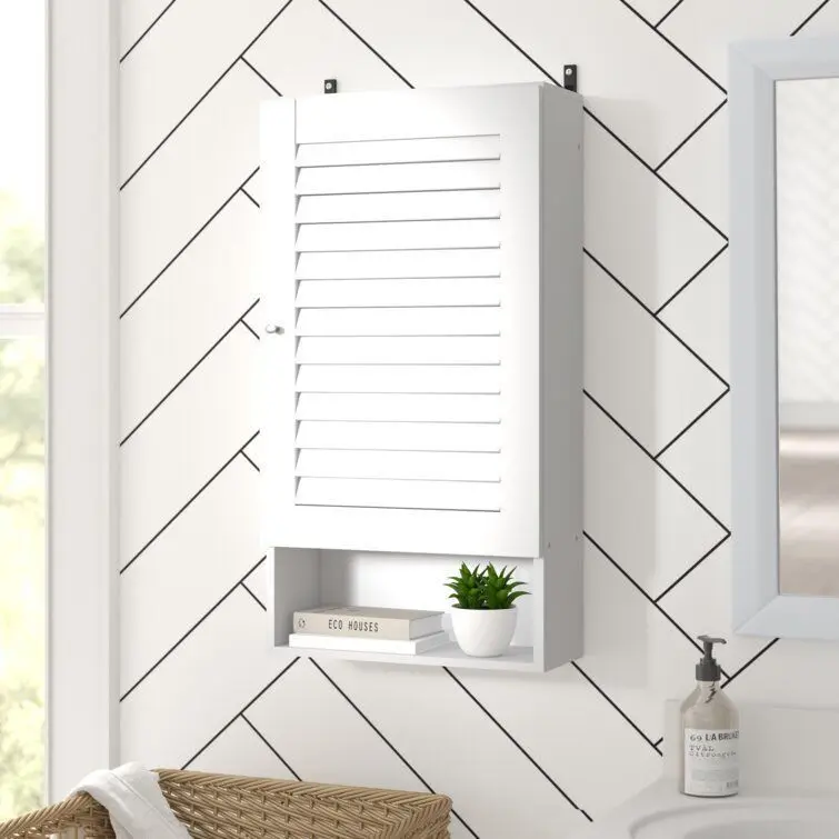 - Dickens 15.8W x 29 H Wall Mounted Cabinet with one adjustable shelf, designed for small spaces. This cabinet mounts on the wall to expand your existing storage space and features one door to hide your unmentionables from view. This is a great addition to your home to help you keep your essentials organized. Charm and practicality come together in perfect harmony with this wall cabinet. All the products are produced. Please follow the care instruction that comes in the package for details.