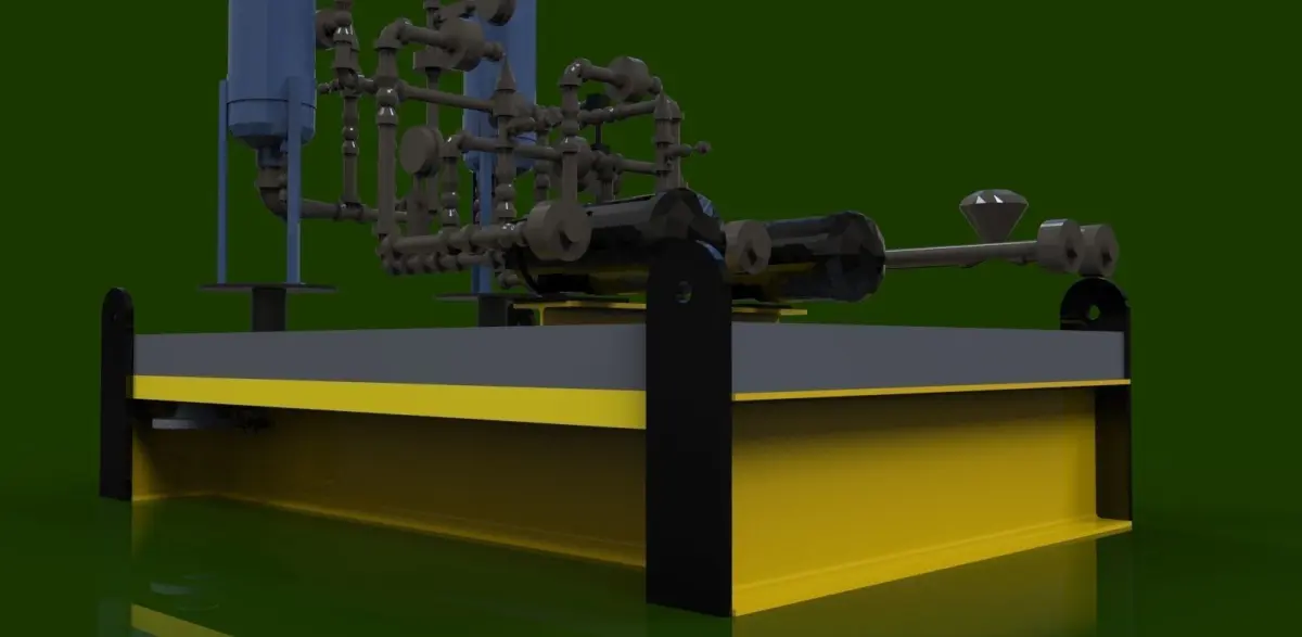 offshore diesel pump, design with w12 beams and w6 beams, c8 channel for drain trough with a 3" ansi weld neck 150 lbs