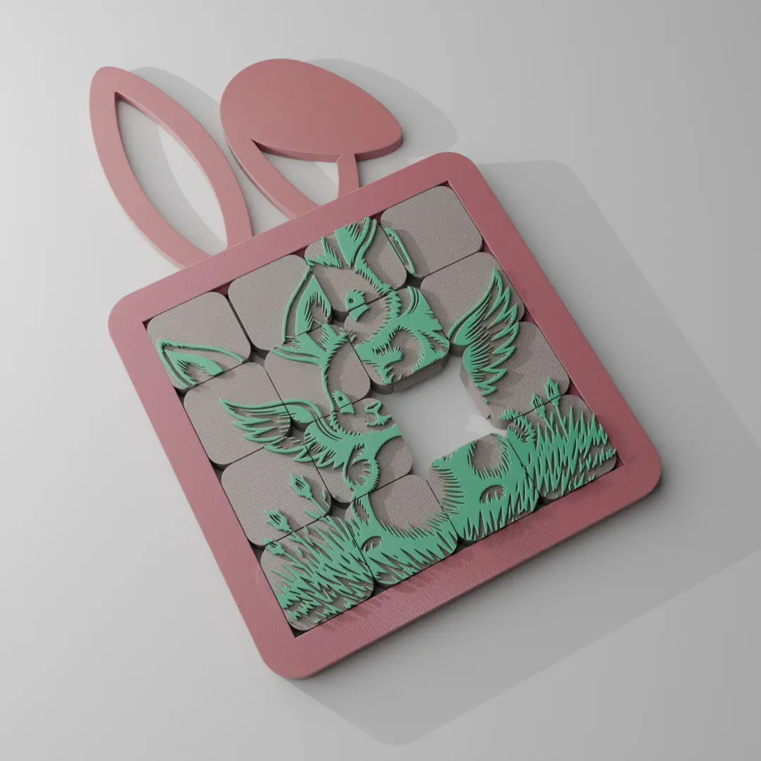 Intended UseThe model serves as a decorative item but it is also a sliding puzzle game! Suitable for nursery rooms, children's spaces, or anyone who enjoys playful designs featuring animals! This puzzle is very difficult to solve but super easy to print: print-in-place and multicolor ready!