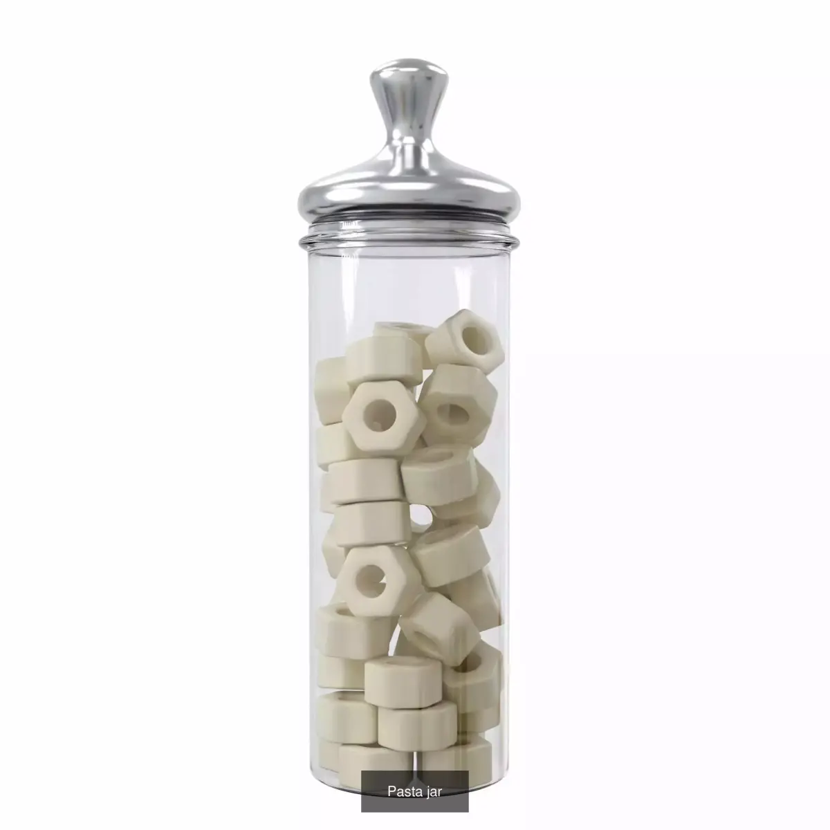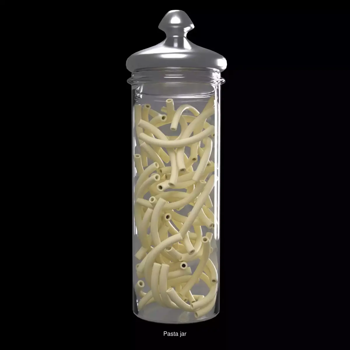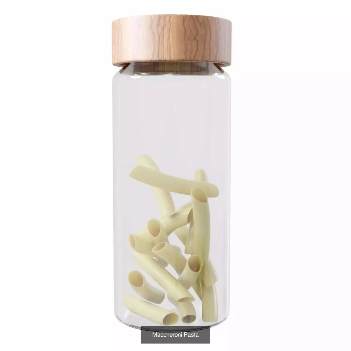 High quality Pasta Jar, and there are diffrent style pasta in diffrent diffrent jar also pasta are physical model made in blender that created for 3d product visualization. There are diffrent kind of food item called Noodles or pasta or Spaghetti Jar. This product are for intorior or kitchen or cooking or food item visualization.