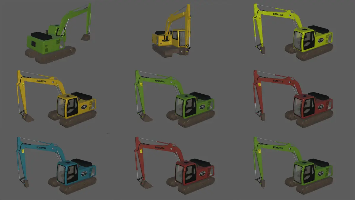This is a pack of 10 diggers, it contains 2 types of diggers, each one has 5 different combinations of colors. Models have Color, Specular, Roughness and Normal maps and they are availables as OBJs and FBXs formats. Also, models are prepareds and ready to use in unity engine with their materials and exported for you as UNITYPACKAGE format.