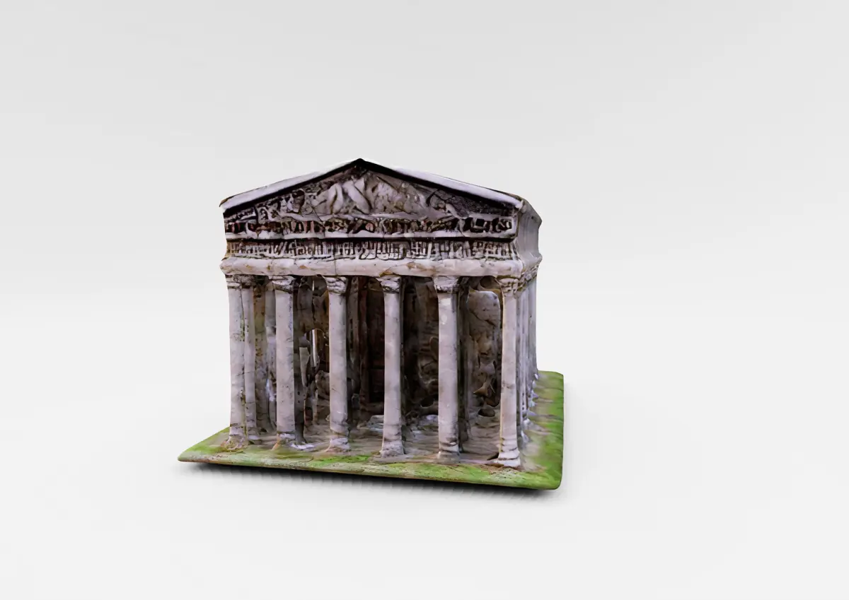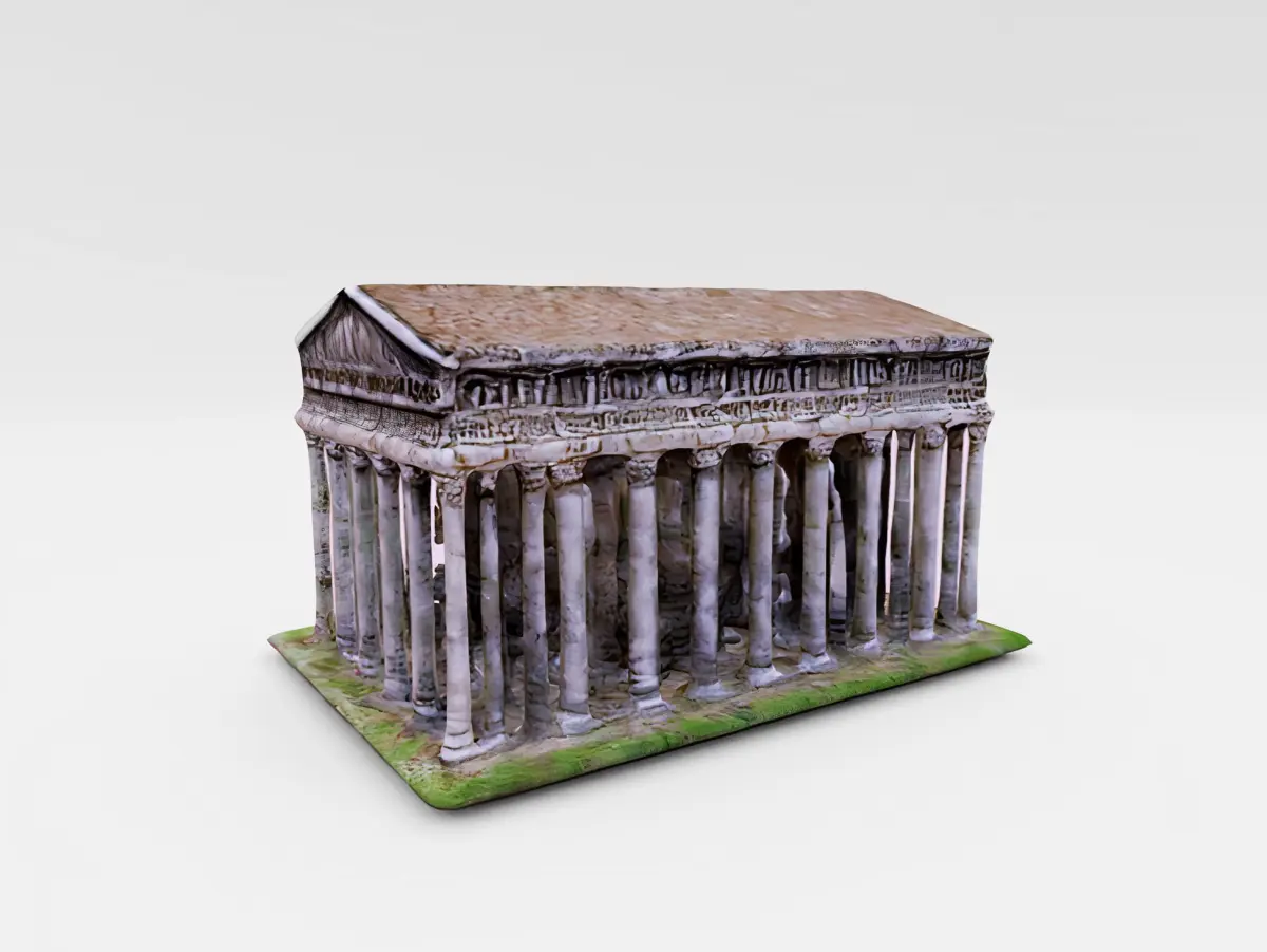 This 3D model represents a detailed digital reconstruction of a classical Ancient Greek temple. It is meticulously crafted to showcase the iconic architectural elements such as the Doric columns, the pediment with its intricate friezes, and the entablature. The model captures the essence of ancient craftsmanship and the grandeur of Hellenistic structures.