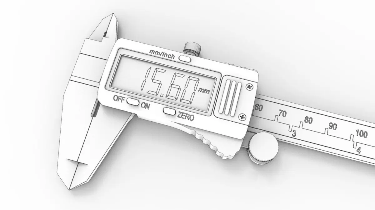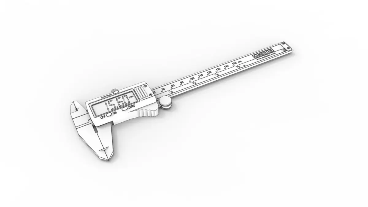 A model of electronic digital vernier calipers, with LCD screen. These are Axminster calipers accurate to .01 millimetres. Modelled in SolidWorks and rendered using KeyShot.