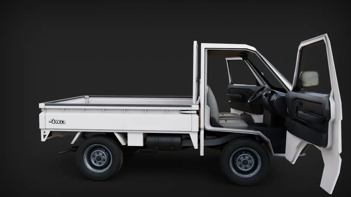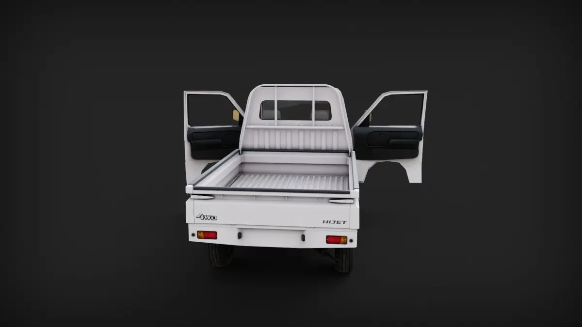 model includes a Dihatsu hijet pick-up truck with High quality full PBR texturescenterd on the grid with rotetable doorsclean quad topology good for animationsuv mappedPaint color can be simply changed with color picker and fill tool in Photoshop, Gimp, Krita, blender & other similar softwaresinterior can be flipped to change between left and right hand drive(RHD TO LHD)