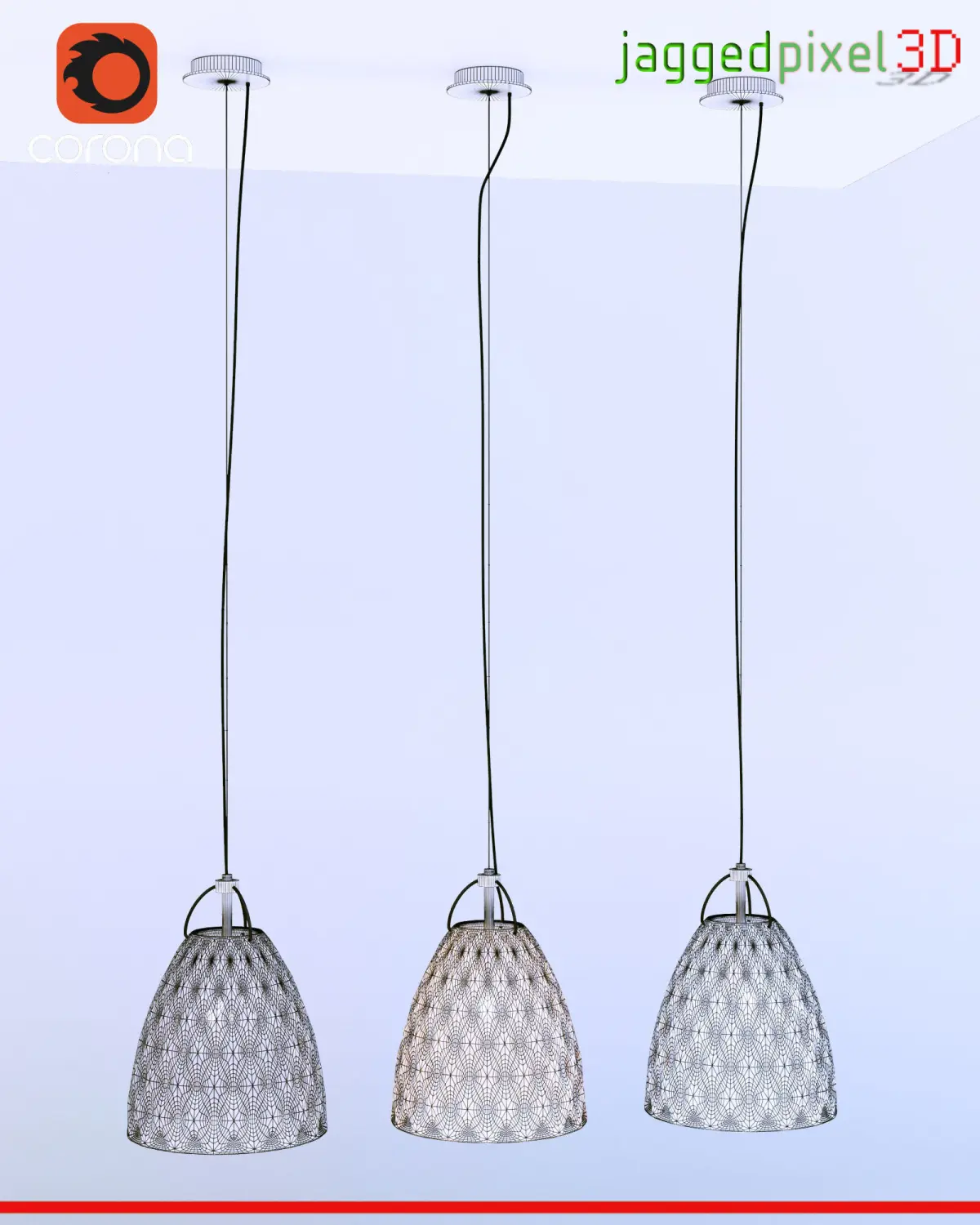 Model is done in 3ds Max 2021 (with a copy saved in 3ds Max 2018) and Corona 5.I had to cut the dimpled glass lampshade into 2x halves for the dwg and dxf exports because of vertice limits unfortunately.