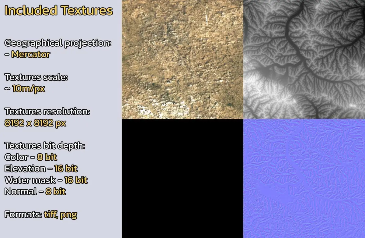 Warning: minor clouds/artifacts may be present on the diffuse color satellite texture due to the nature of the dataset. Check product images.