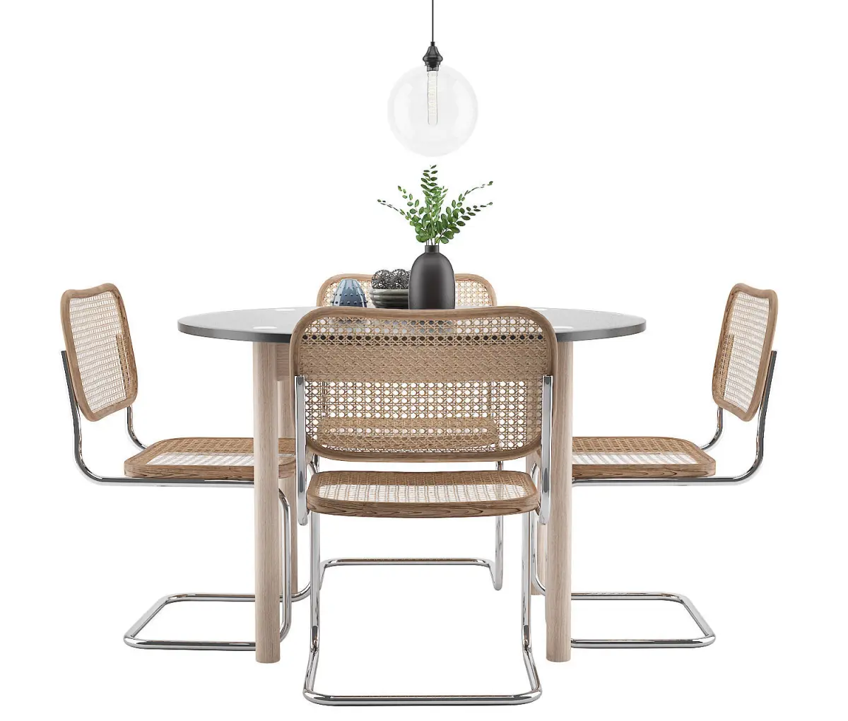 High quality 3d models set of complete dining setup with a dining-table, chairs, plant, lamp and some accessories all with all maps included. All the chairs using alpha material.All Rendermodels 3d models are originally created in 3dsmax and V-Ray renderer. Previews are rendered in V-Ray, please not that the studio scenes, light and environment are not included unless otherwise stated.All models are real based on size from the manufacturers, made carefully after references from scandinavian design Every model is complete in various format, textured, grouped, centered and ready to render.