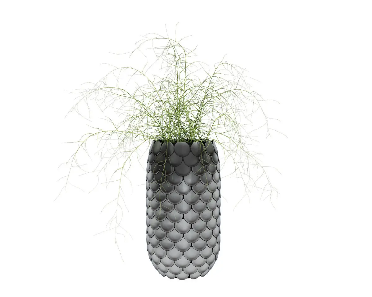 High quality 3d models set of complete dining setup with a round dining-table, modern type of scandinavian tone downed black chairs, beautiful vase with green plant, a classic glass ceiling light everything with all maps included.