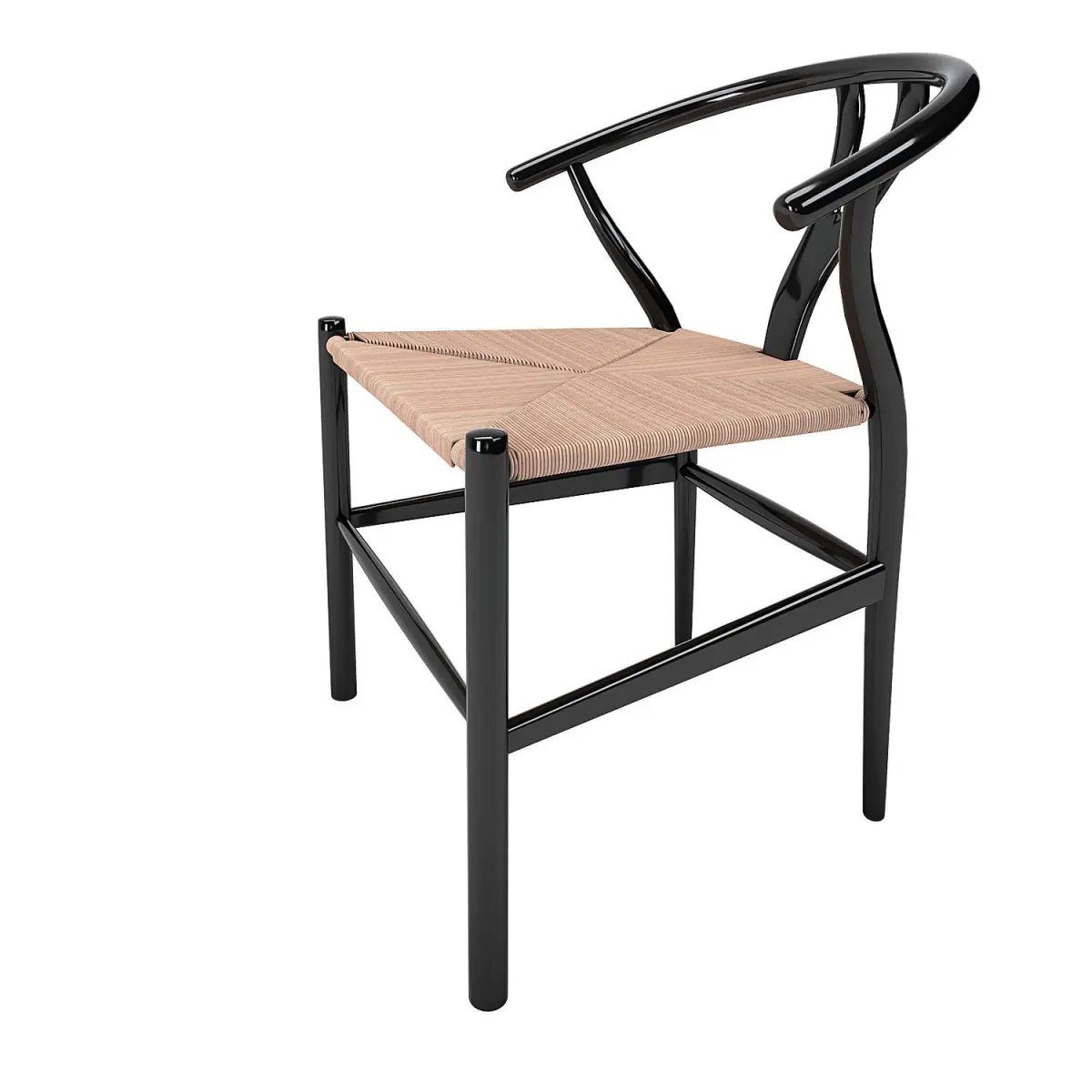 High quality 3d models set of complete dining setup with a dining-table with wood and gloss wood feets, modern type rattan and wood chairs, beautiful green plant with vase, a modern gold ceiling light everything with all maps included.