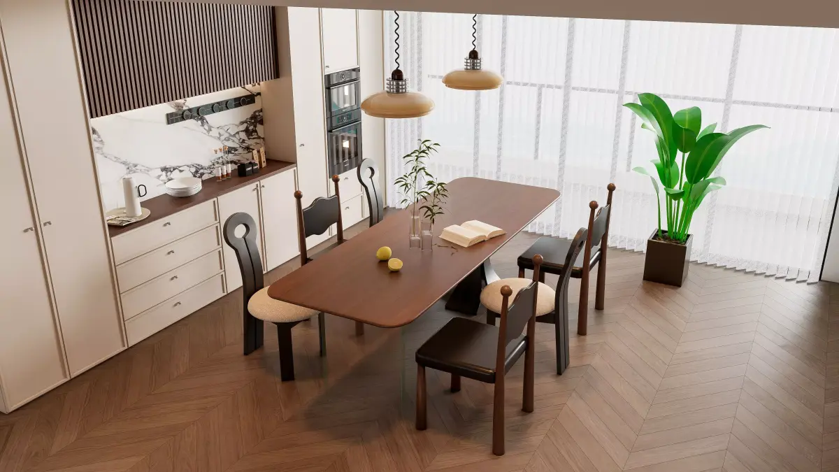The 3D model includes a beautifully designed dining table set with chairs, elegant lighting fixtures, stylish decor elements, and realistic textures that add depth and authenticity to your scenes. Whether you're an architect, interior designer, or a 3D artist working on architectural visualization, this model provides you with a versatile and ready-to-use asset.
