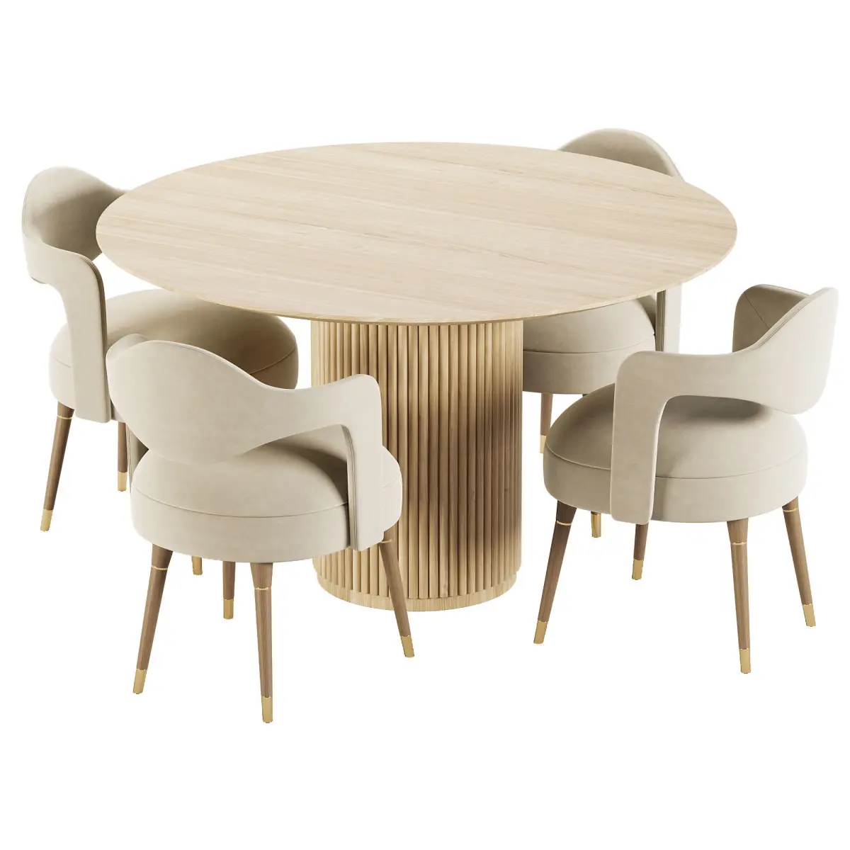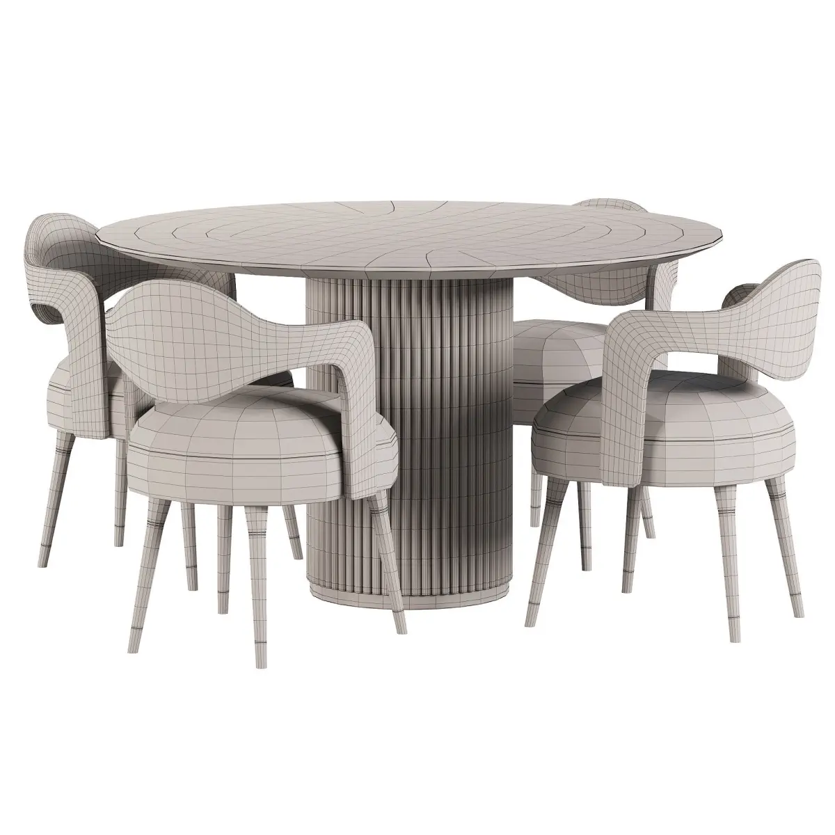 Model: The seat is made in 3ds Max. Version 2017. Format obj; fbx. A clean topology based on squares. All models are fully UV coated. All nodes in the drawing and material are clearly namedName: Dining Set 35Version: 2017Preview: YesUnits: MillimetersDimension: 1750.6 x 1750.6 x 729.89Polys: 28 104XForm: YesBox Trick: YesModel Parts: 4Render: Corona, VrayFormats: 3Ds Max 2017, OBJ, FBX