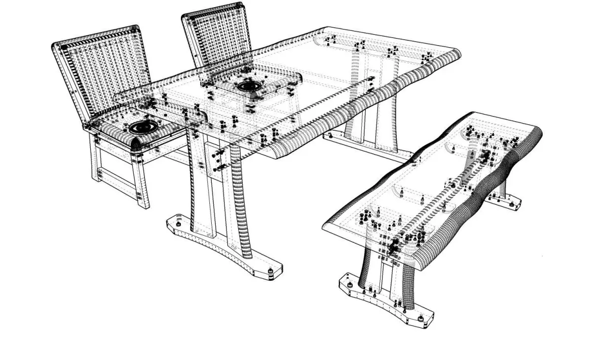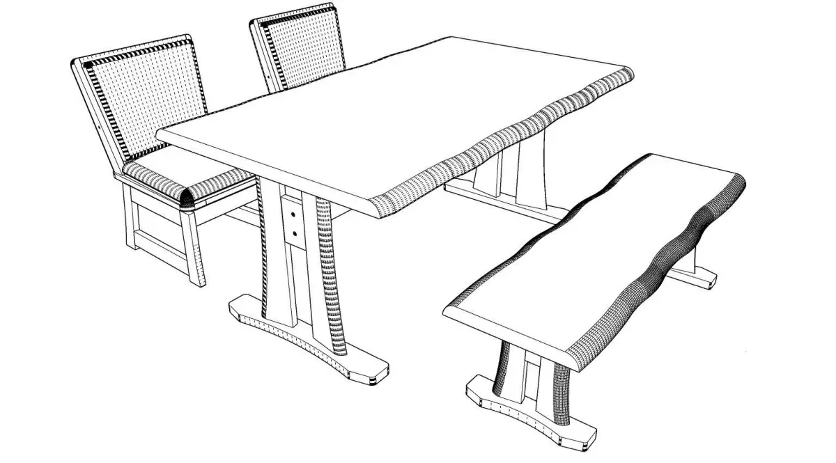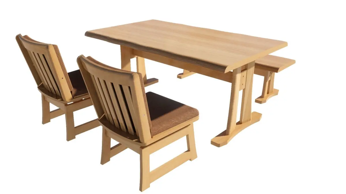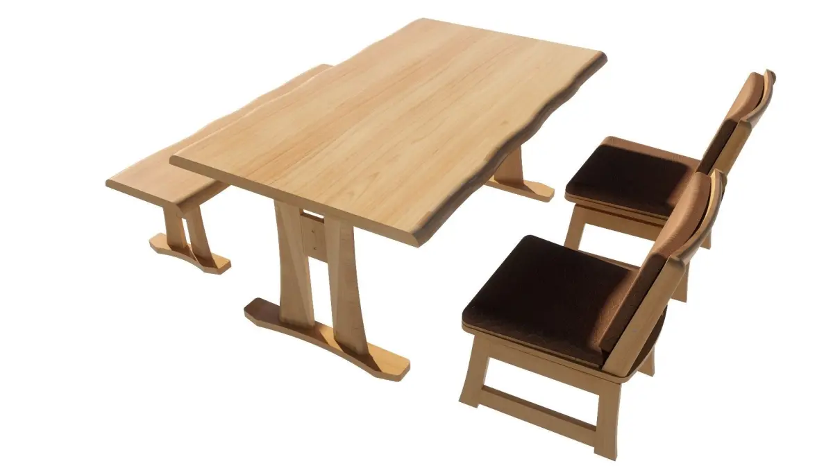 There are 3 models of a 4-seat dining set: 1. Table, width 90 cm., length 150 cm., equal to 1 piece. 2. Chairs, equal to 2 pieces. 3. Bench, equal to 1 piece. It will be designed in a wood color. Dark-light colors can Place it in the corner of the kitchen, living room, and front room.Restaurant, coffee shop, dessert shop