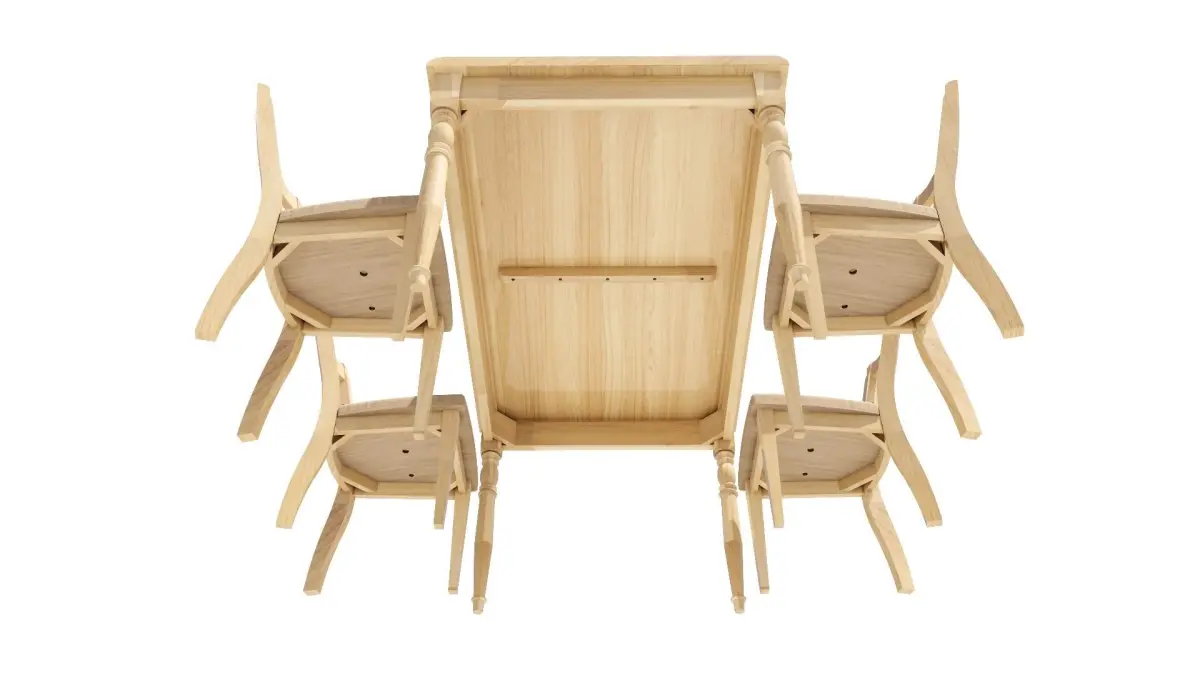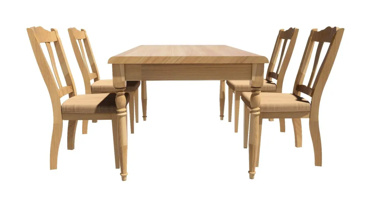 There are 2 models of a 4-seat dining set: 1. Table, width 90 cm., length 150 cm., equal to 1 piece. 2. Chairs, equal to 4 pieces. It will be designed in a wood color. Dark-light colors can Place it in the corner of the kitchen, living room, and front room.Restaurant, coffee shop, dessert shop