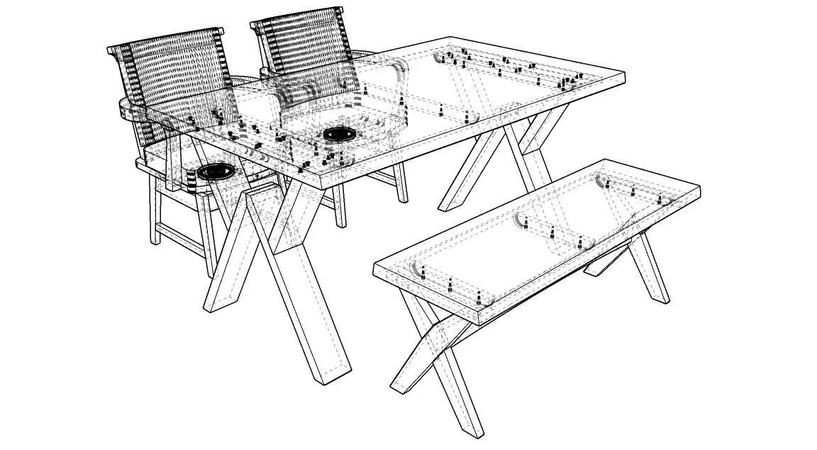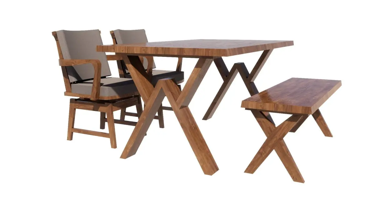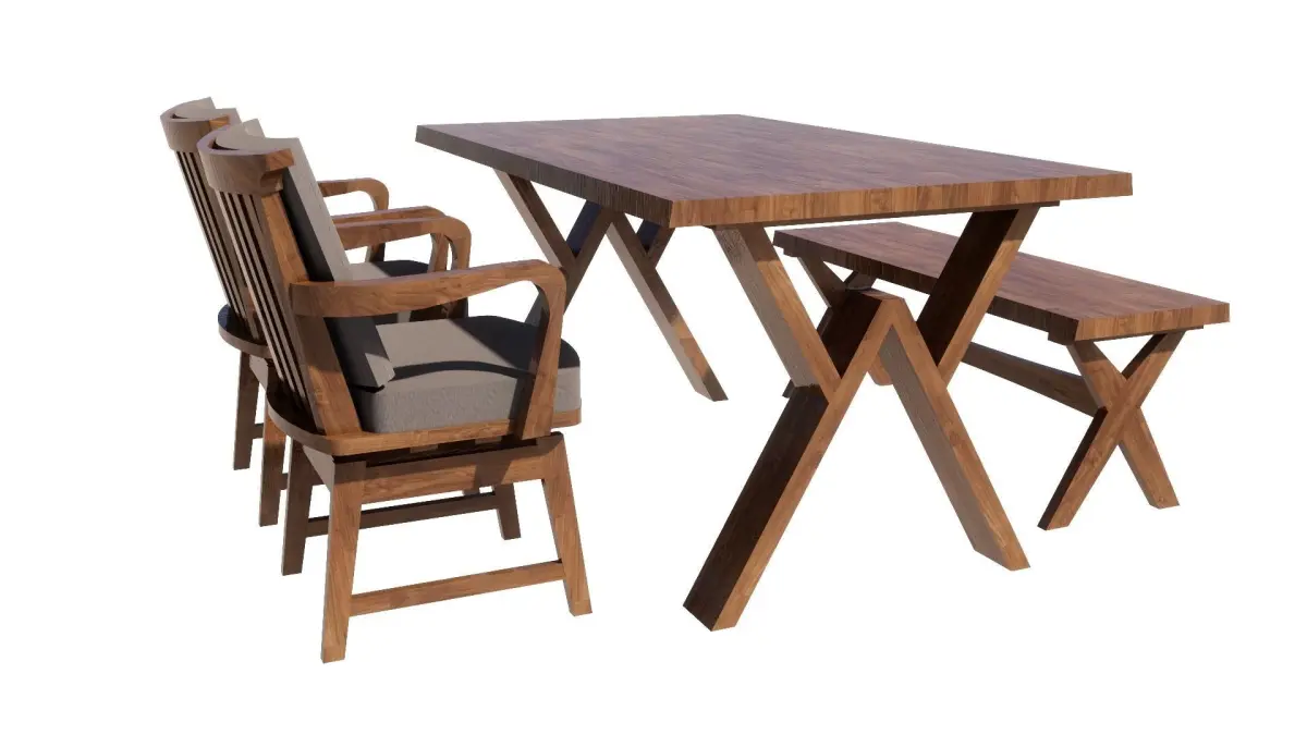 There are 2 models of a 4-seat dining set: 1. Table, width 90 cm., length 150 cm., equal to 1 piece. 2. Chairs, equal to 4 pieces. It will be designed in a wood color. Dark-light colors can Place it in the corner of the kitchen, living room, and front room.Restaurant, coffee shop, dessert shop