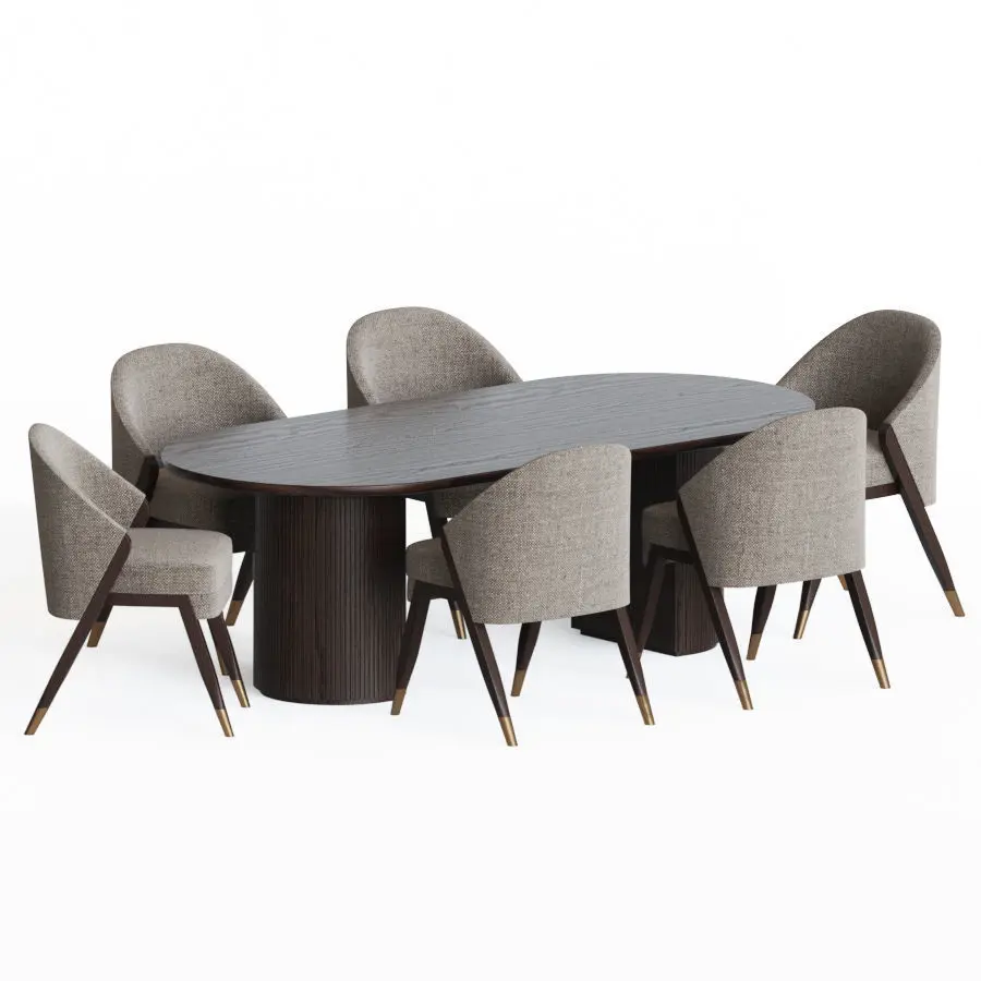 CARMEL DINING CHAIRShttps://www.frato.com/p3-p-512-carmel-enGubi moon dining tablehttps://shop.gubi.com/products/moon-dining-table-elliptical-260x105?variant=31762346279052