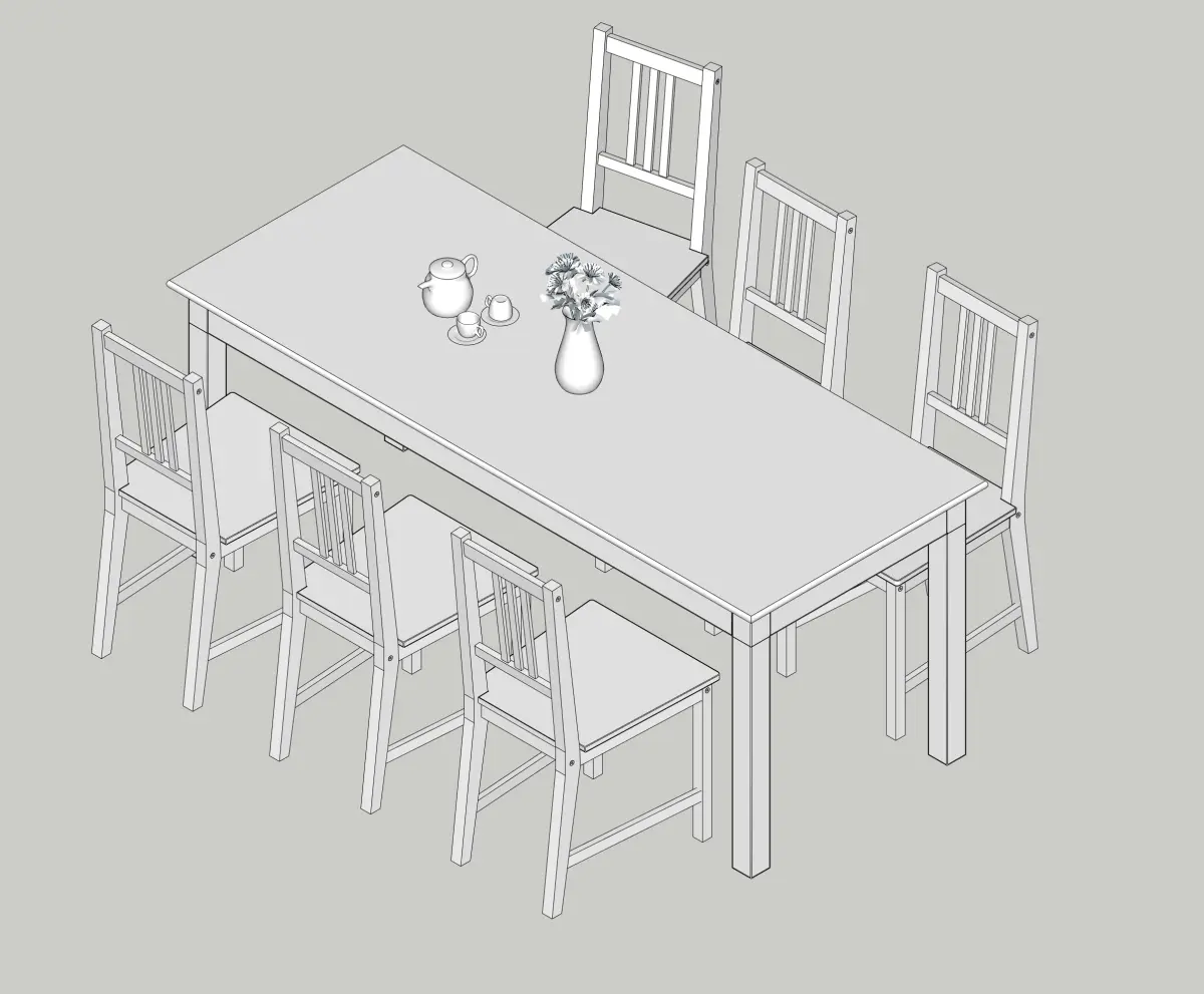 Furnishing 3dmodel Dining Set by IKEA product ready render using Blender, modeling in SketchUp with file available for Blender, obj, mat, skp. texture detailed similar as the product. include price tag and link of the website direct to the product related information in sketchup.