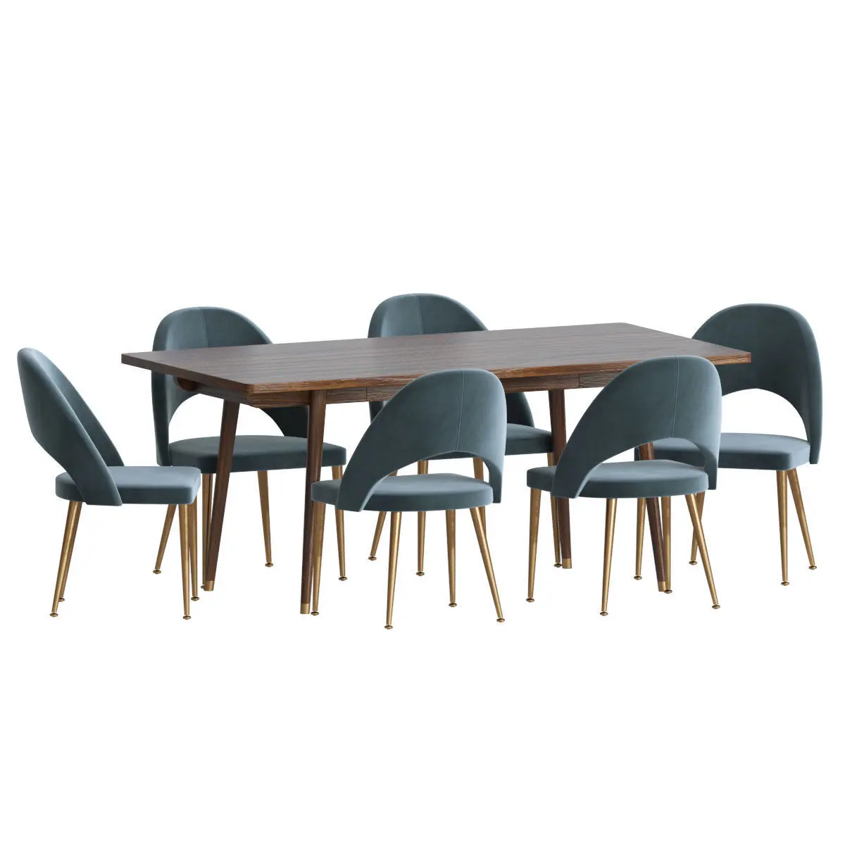 The file contains: --Modern Modrest Gloria Blue & Antique Brass Dining Chair (Set of 2)-Modrest Gloria Mid-Century Walnut Dining TableMaterials: Brass, gold, Oil Bronzed, polished, white, black, Wood, Velvet, birch, oak, walnutPlace of use -Small & large Dinning rooms, kitchen, bar, restaurant, hotel.Archive Contains: -3dmax 2012Vray 3.20.02CoronaMap.objThanks