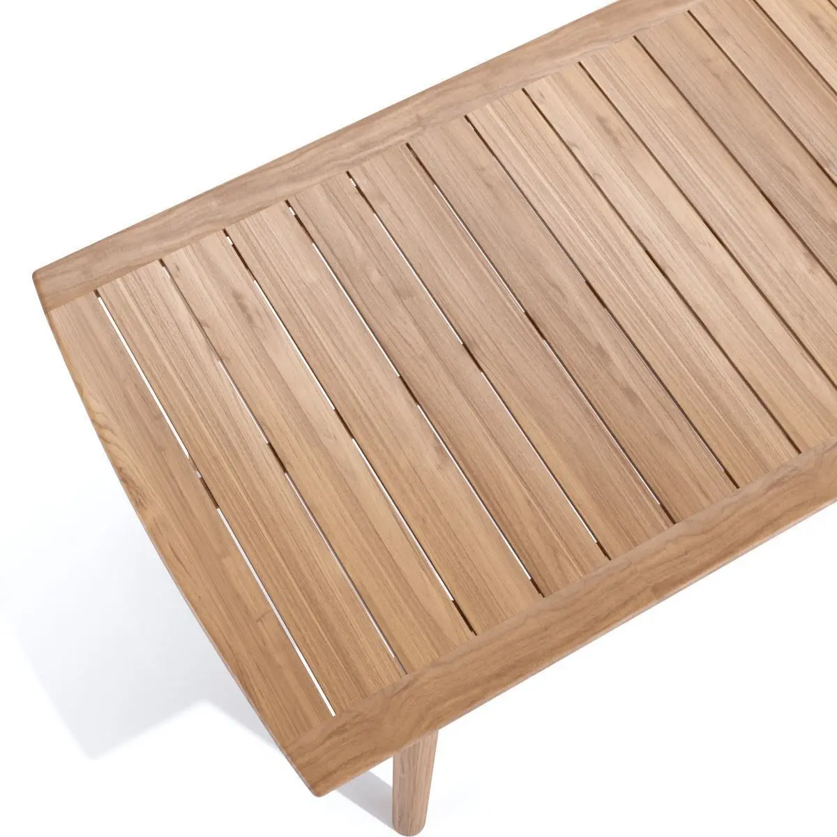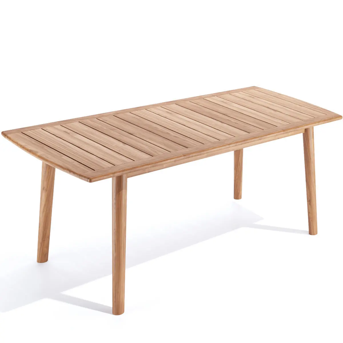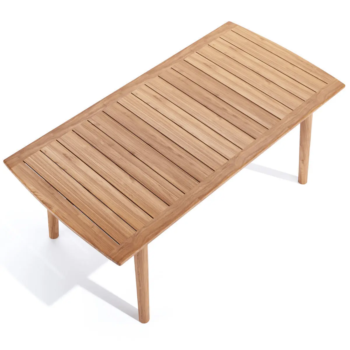 The Modurn Dining table is one of our newest designs in outdoor dining, featuring wide premium teak slats and softly rounded edges. This table has a chic, minimalist elegance and is designed to last.Overall dimensions: W 70.75x D 35.5 x H 29.5"