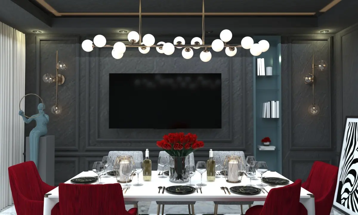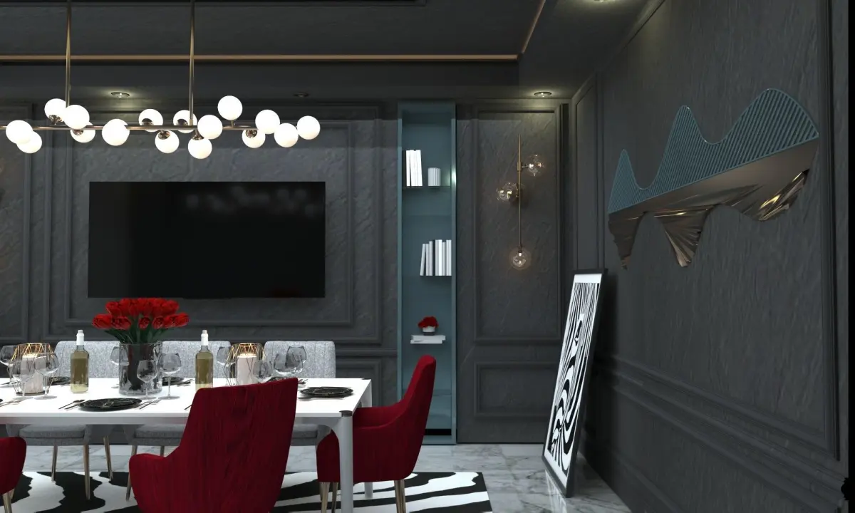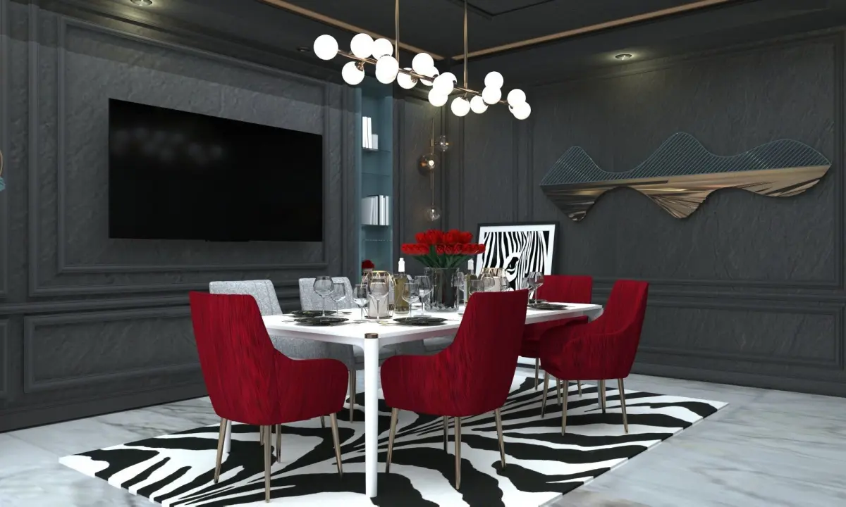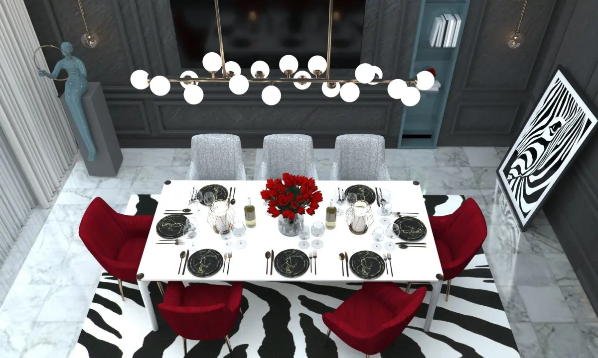 Neo-classical dining room, modern design with accent colors and a special touch of zebra on the floor, allowing for close-up photos. Product includes camera setup, lights, and materials used. Ready to export vray.......................... 3D MAX VRAY_ 2021 Maximum file size: 35.5MB ........ ……………………………………………………………………………………………………………………………. ... ... I hope you liked it! Also check out my other models, just click on my username to see the full gallery