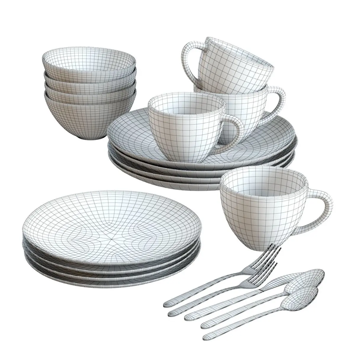 High-quality 3d model of a Crare and Barrel Addison Dinnerware Set.