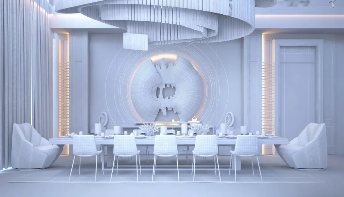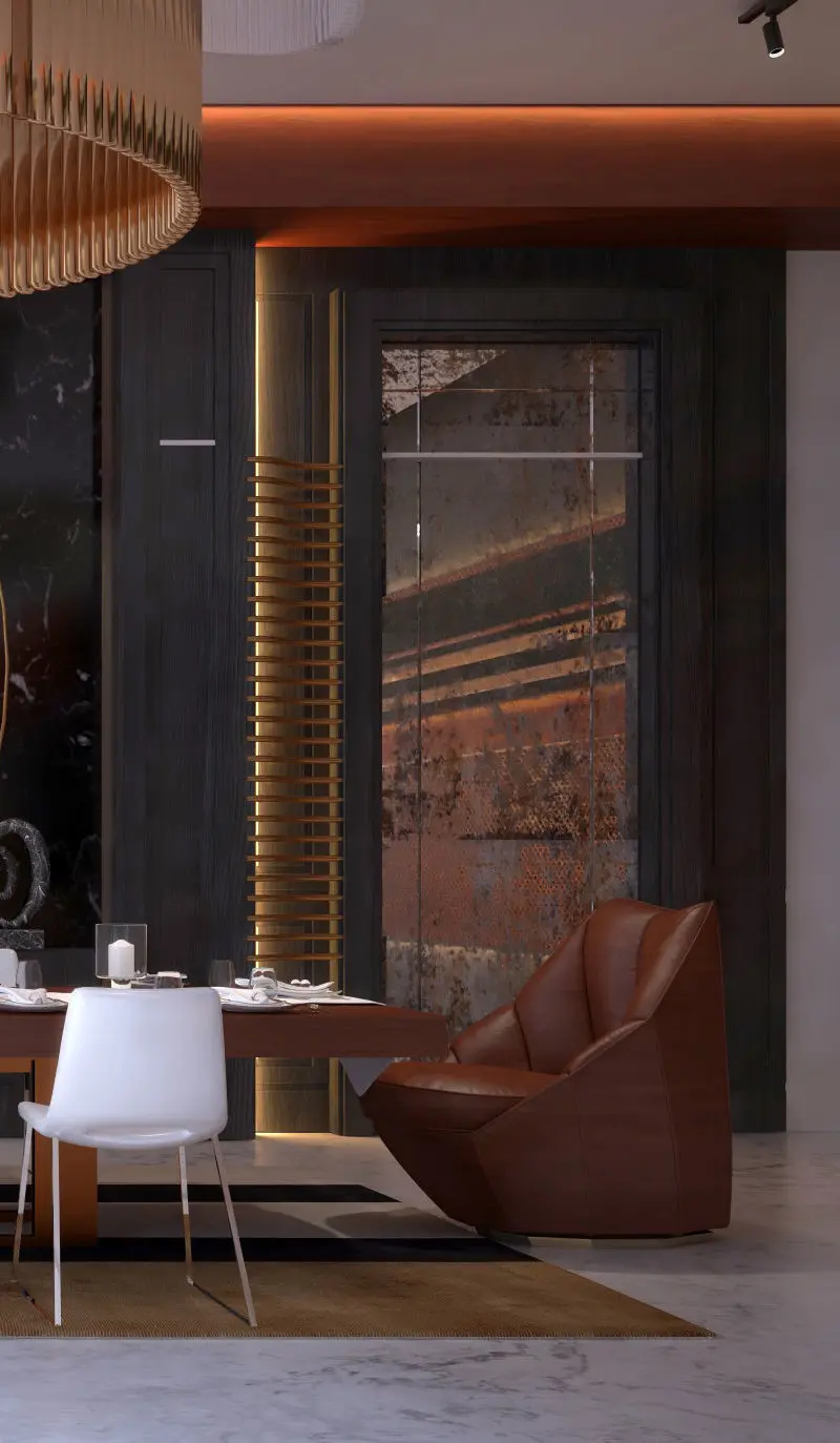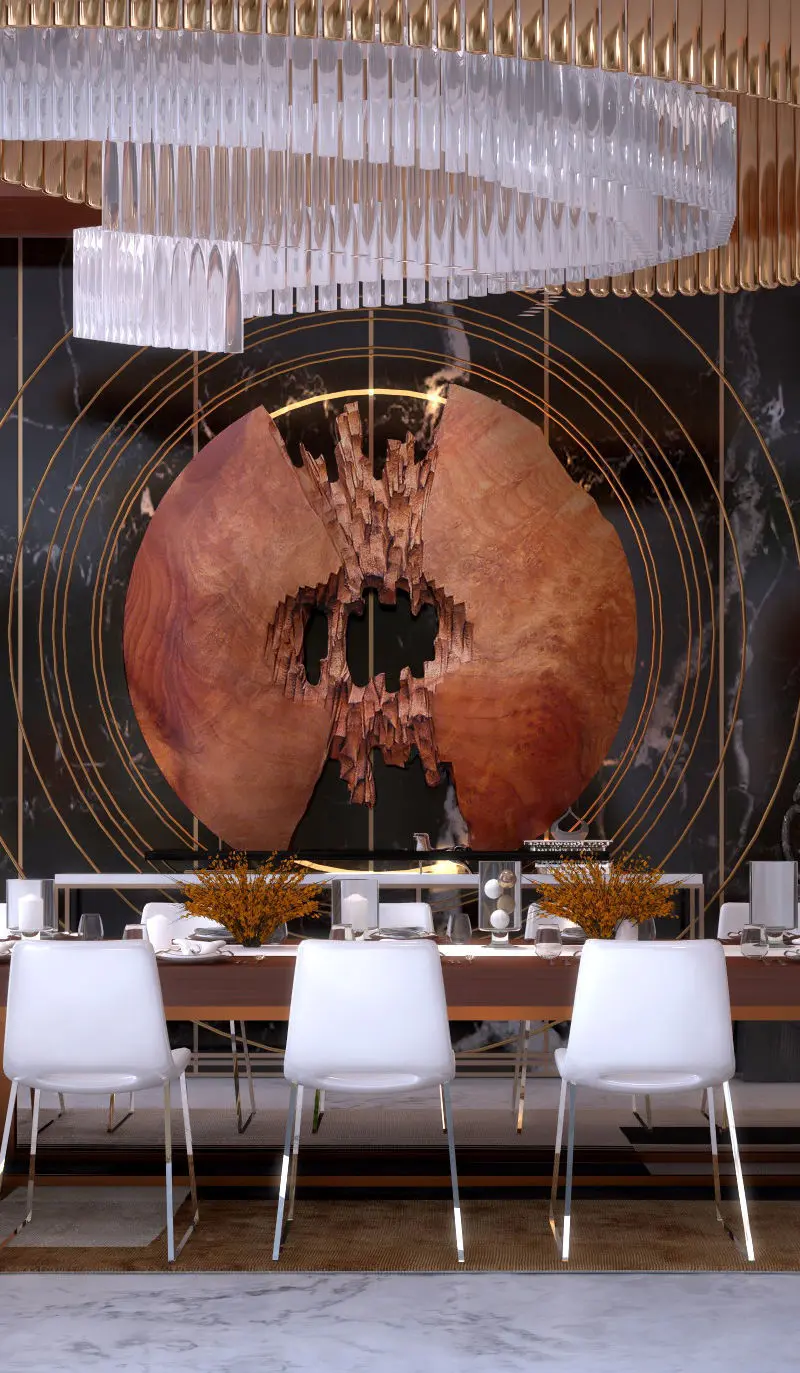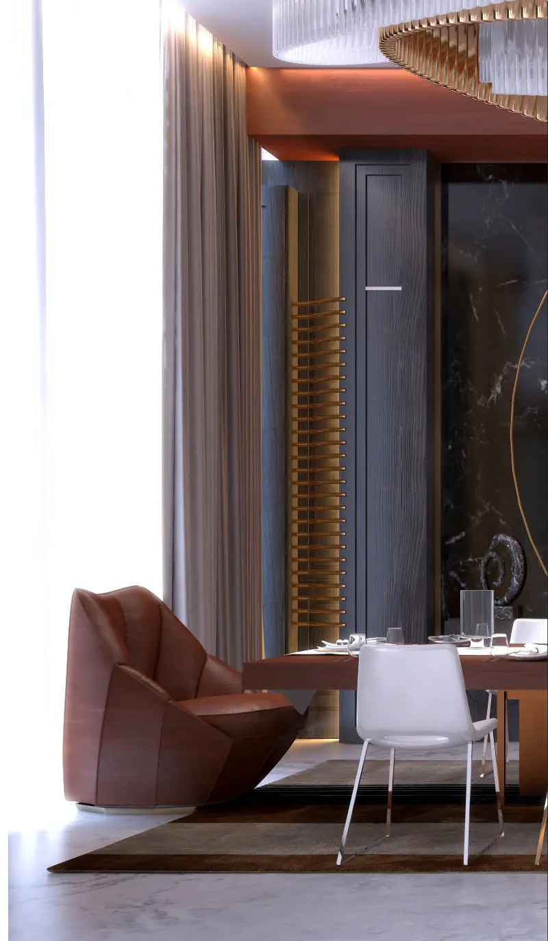 Luxury Design for dinning room with red oak woode, all the material and texture and light setting in zip. file