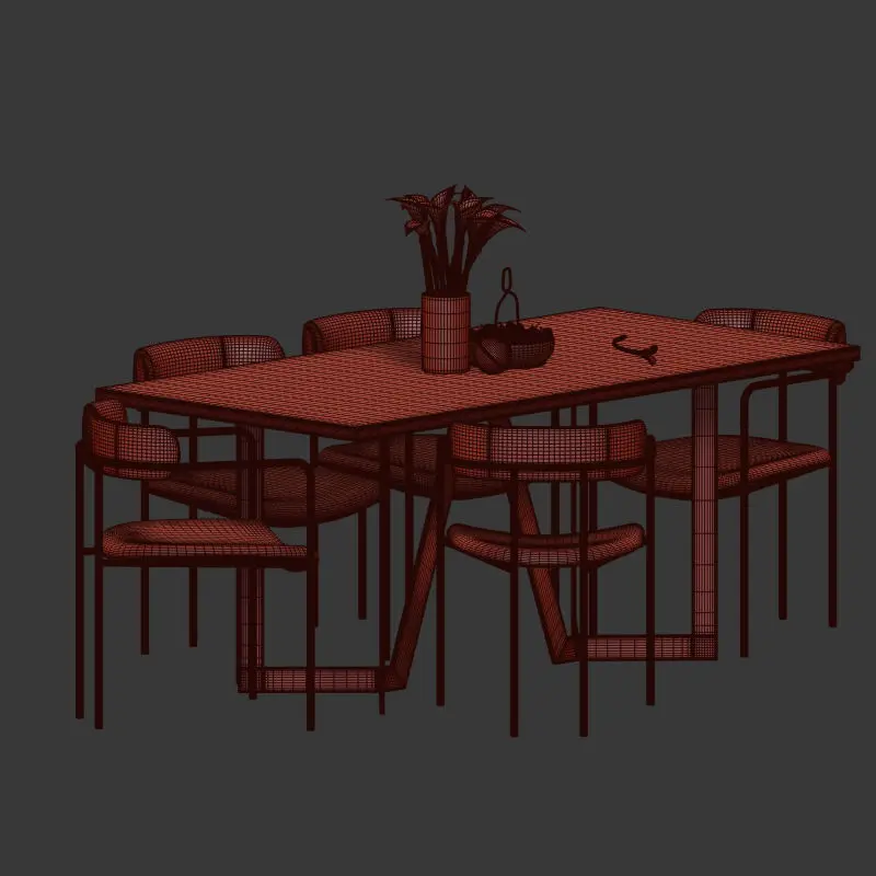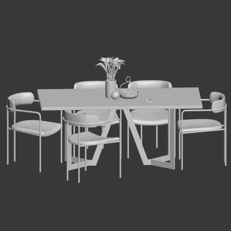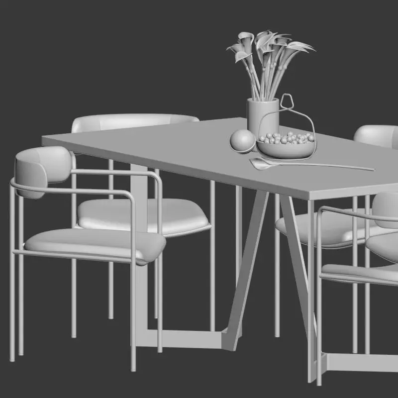 Dinning Set 02The file contains: - Lenox Dining Chair West Elm 19.25 wx 22 dx 30.5 h. Tower Dining Table West Elm 72wx 36dx 31h. Calla FLower Vase Decorative Ball Food Item / Rasberry Fruit Bowl. Archive Contains: - 3d max2014Vray 3.20.02Map