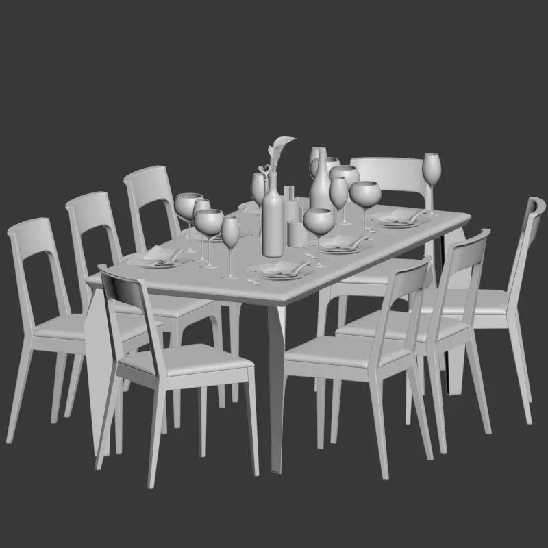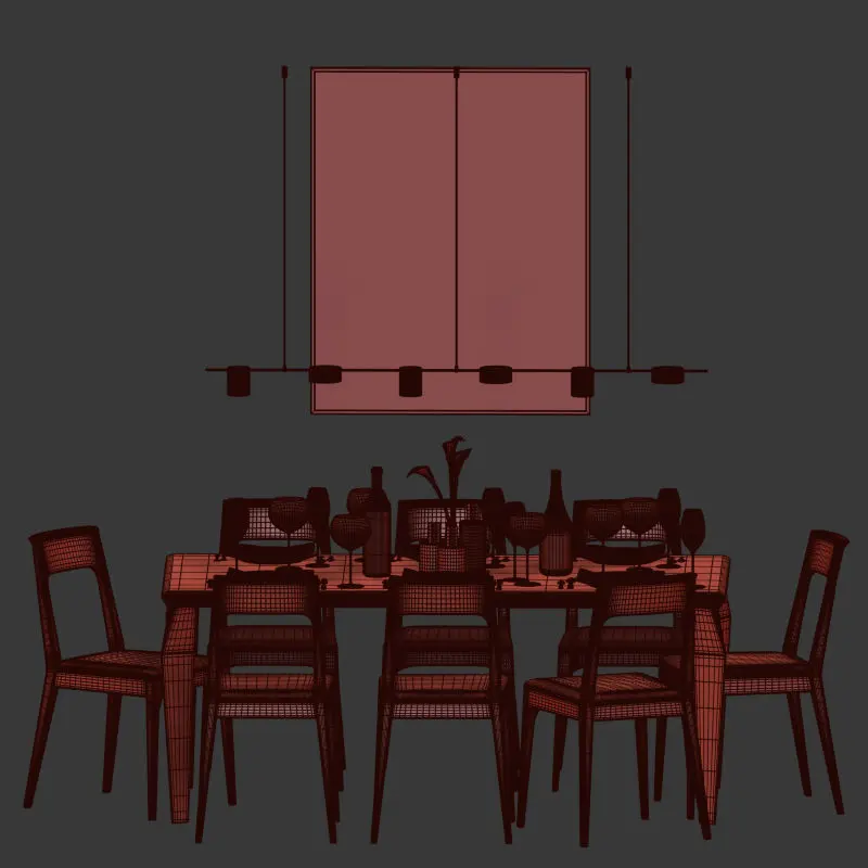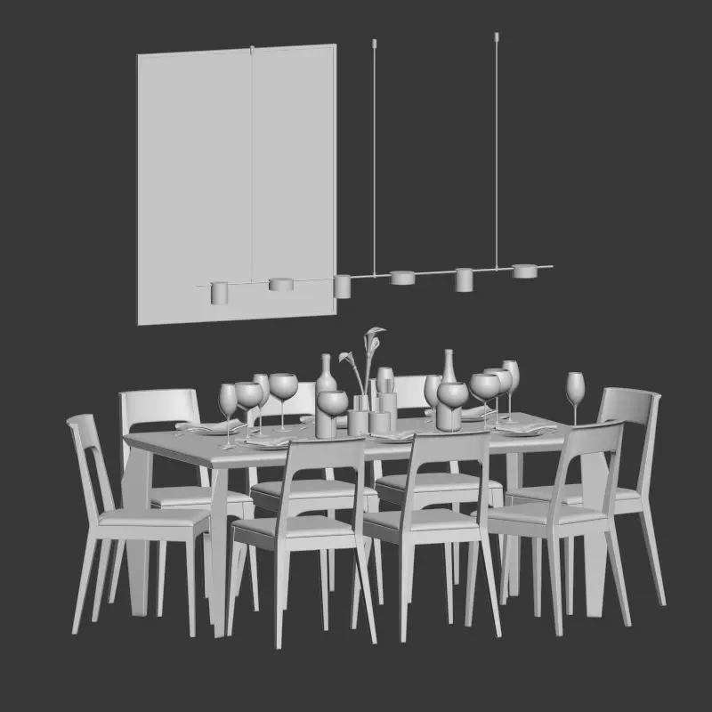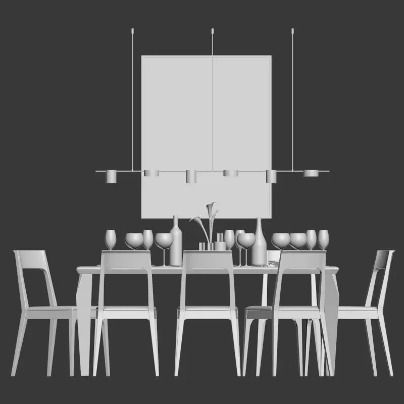 Dinning SetThe file contains: - -Orlo Side Chair-Gioia Dining Table-Counterpoint 6 Light Led Linear Pendant-Table Accessories Materials: Brass,gold,Oil Bronzed,polished,white,black,Wood,Velvet,birch,oak,walnutPlace of use -Small & large Dinning rooms, kitchen, bar, restaurant, hotel.Archive Contains: -3dmax 2012Vray 3.20.02CoronaMap.objThanks