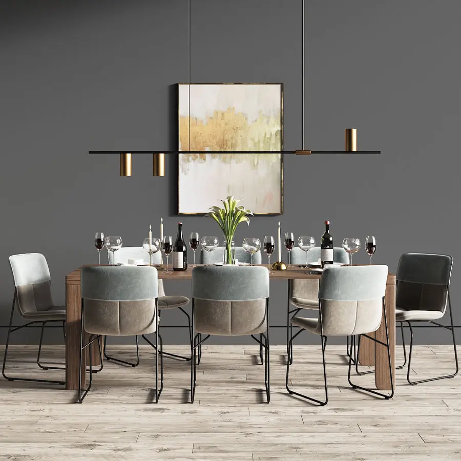 Dinning Set The file contains: - -Ditte Dinning Chair Leolux-Yama dining table-Tribes Linear Pendant-Table Accessories Materials: Brass,gold,Oil Bronzed,polished,white,black,Wood,Velvet,birch,oak,walnutPlace of use -Small & large Dinning rooms, kitchen, bar, restaurant, hotel.Archive Contains: -3dmax 2012Vray 3.20.02CoronaMap.objThanks